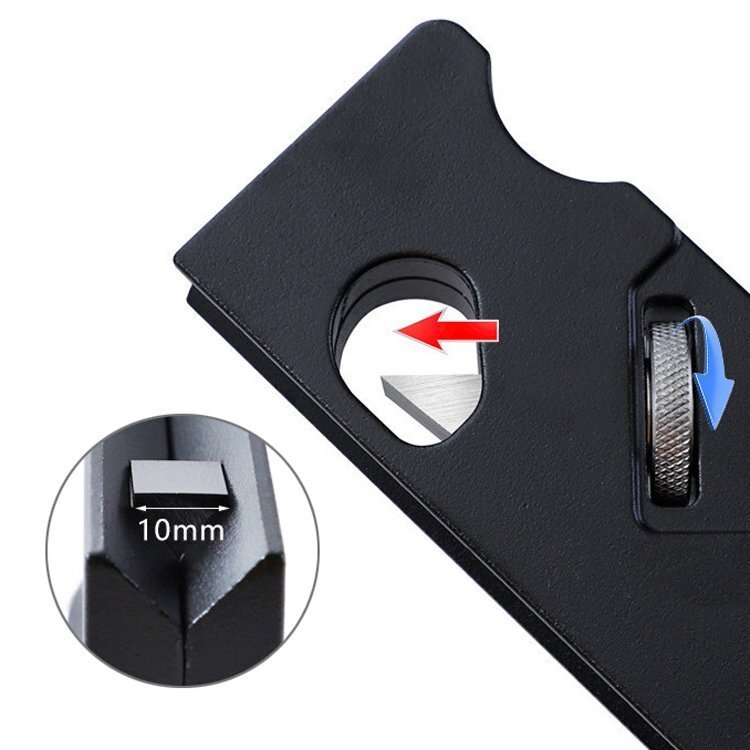 カンナのボディは長時間の使用でも疲れにくい軽量ABS樹脂製で、センター部には便利な水準器も備わっております。