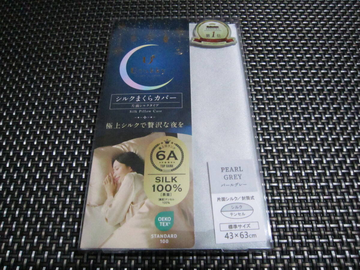 ☆注目!新品未開封 パールグレー シルクまくらカバー まくらカバー 片面シルク 43×63cm 封筒式枕カバー シルクピローケース 裏面テンセル
