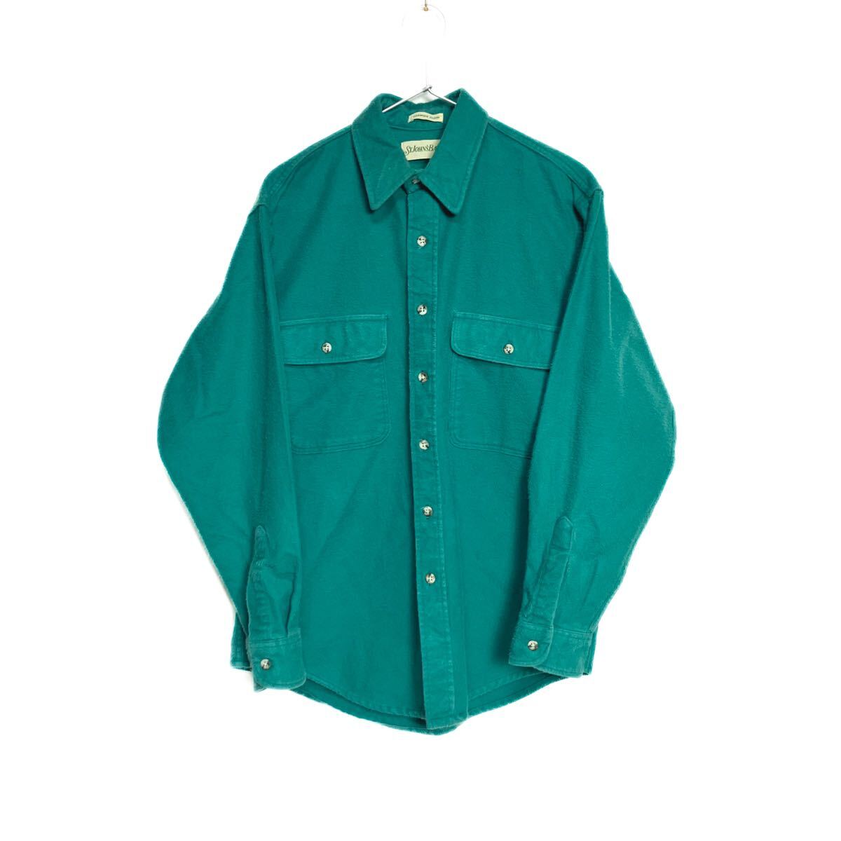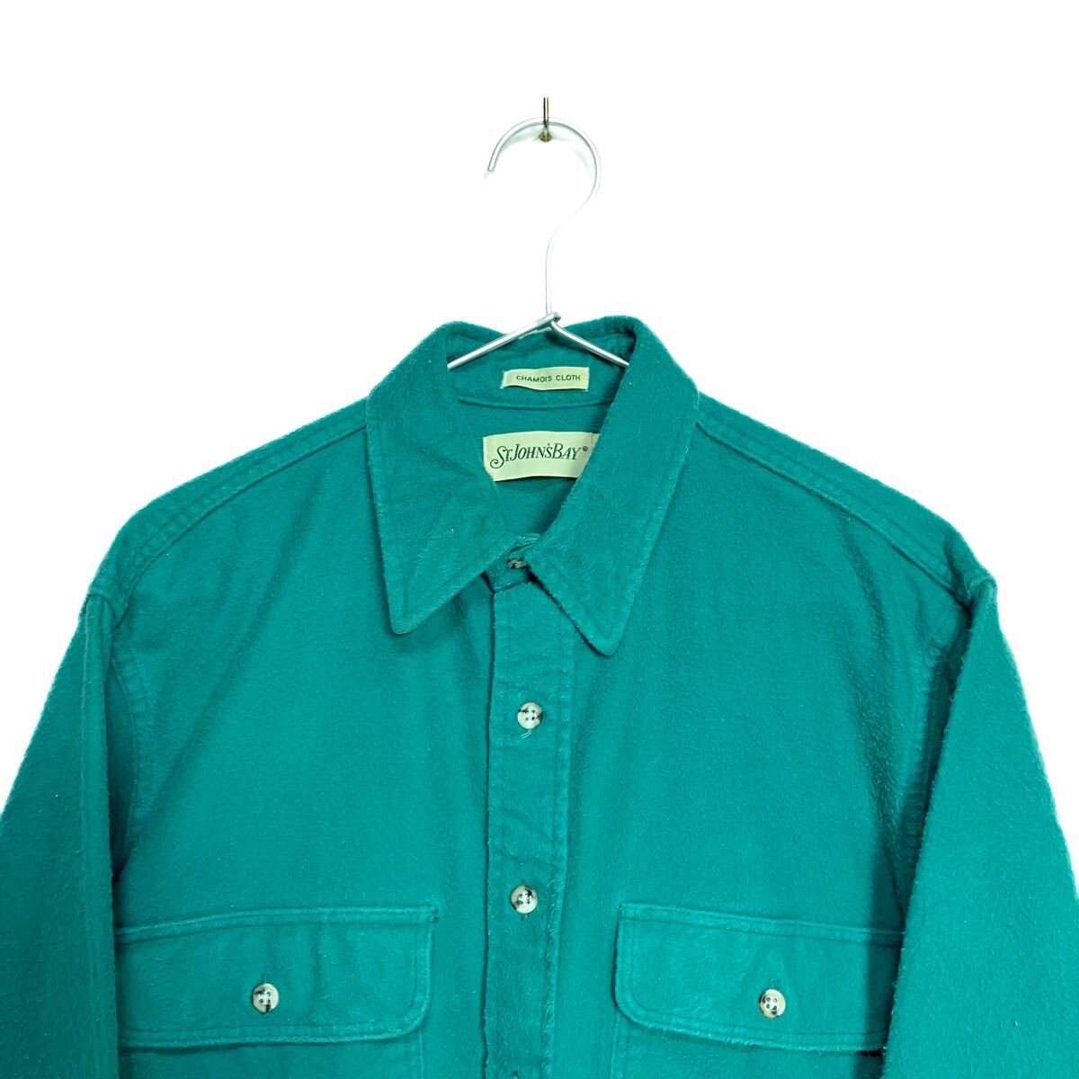 90s USA製 St. John's Bay シャモアクロスシャツ M グリーン ネルシャツ / llbean