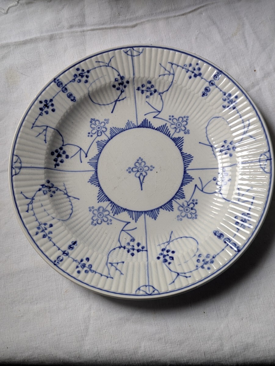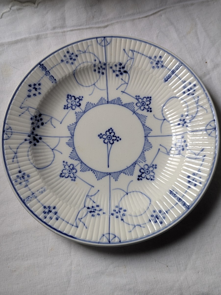 デンマークのロイヤル・コペンハーゲンのブルー・フルーテッドシリーズが有名、元だと思われますがサルグミンヌ、ボッホ、様々なメーカーで制作されています。もともとは中国の唐草模様から着想されていると思います。