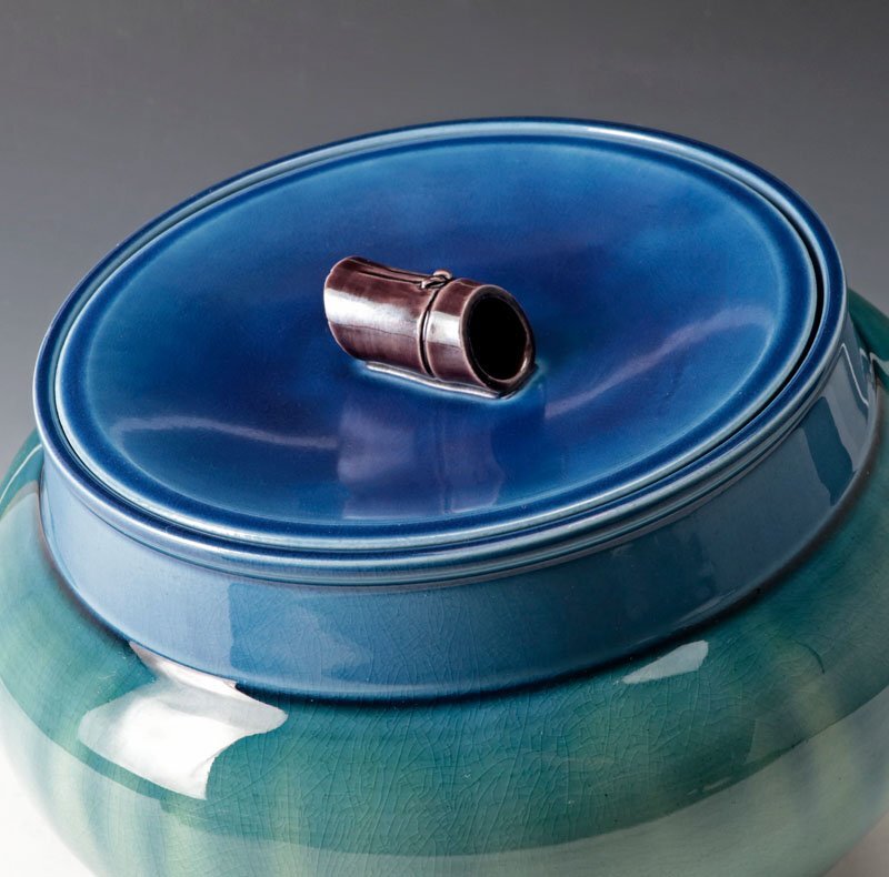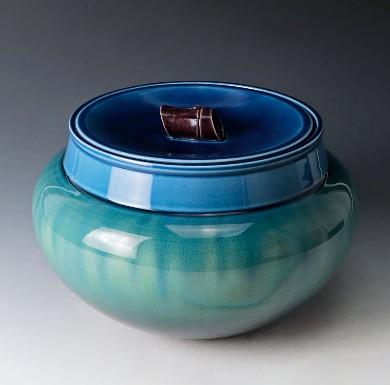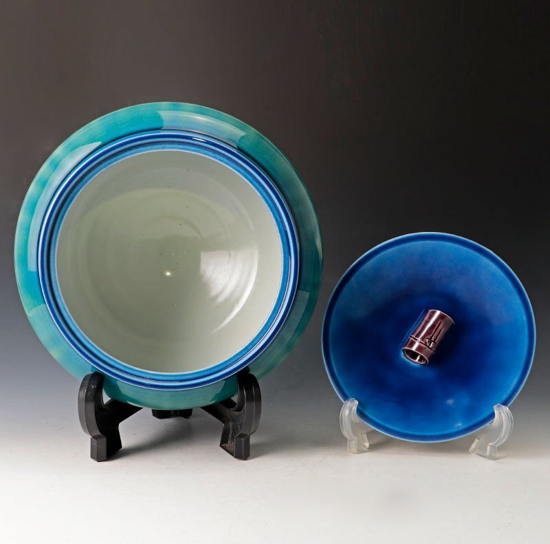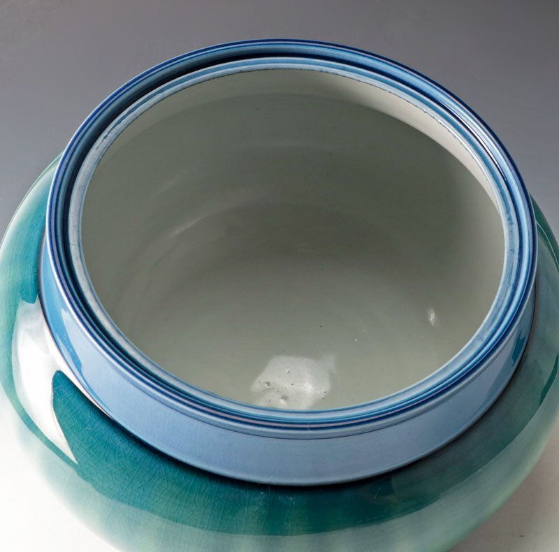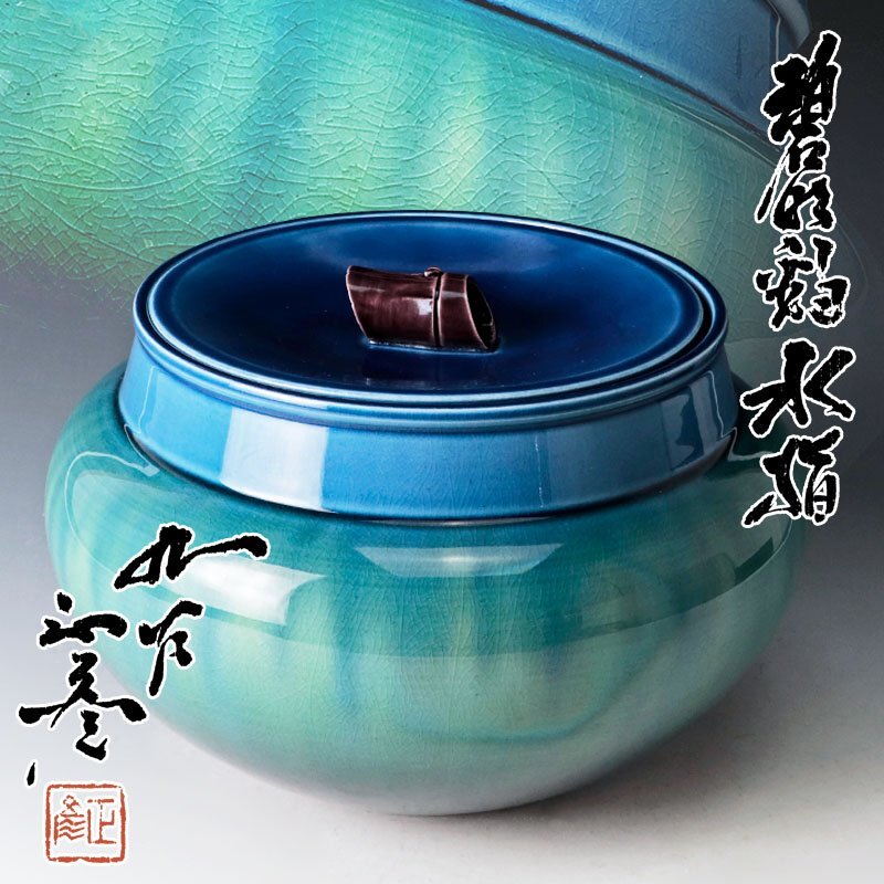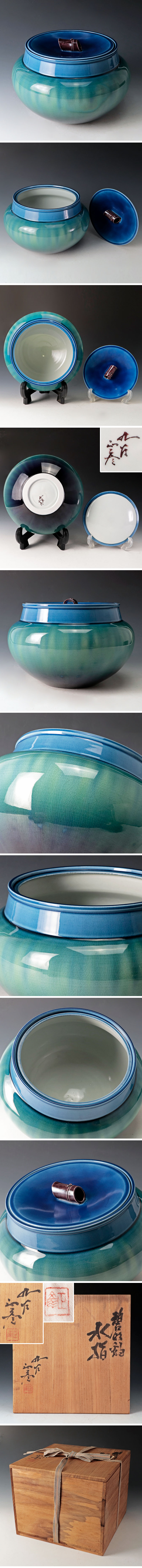 | 【古美味】人間国宝 三代徳田八十吉(正彦) 碧明釉水指 茶道具 保証品 |