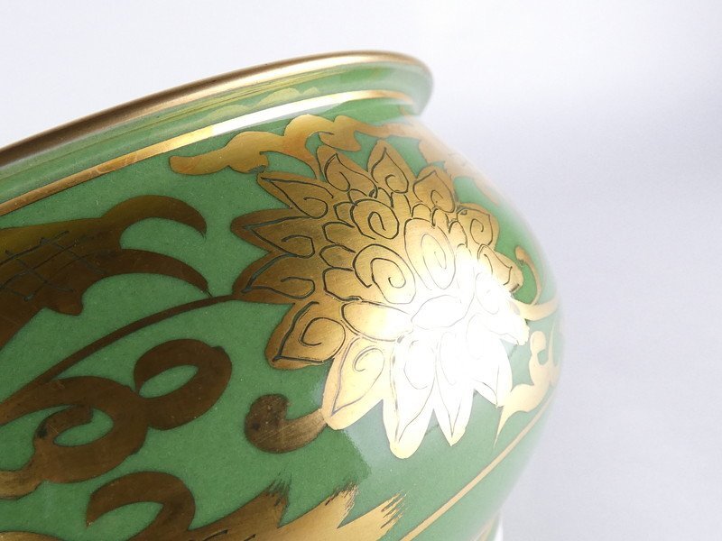 【都屋】手塚祥堂「緑地金襴手 台子 皆具」共箱 茶道具 K108 1113