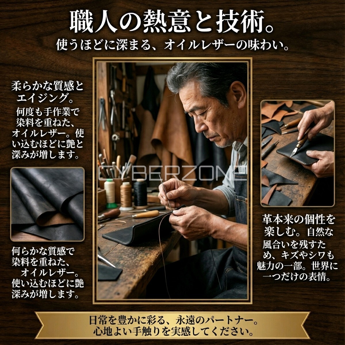 イタリアンレザー使用:耐久性があり、使い込むほど風合いが増す高品質な牛革を採用