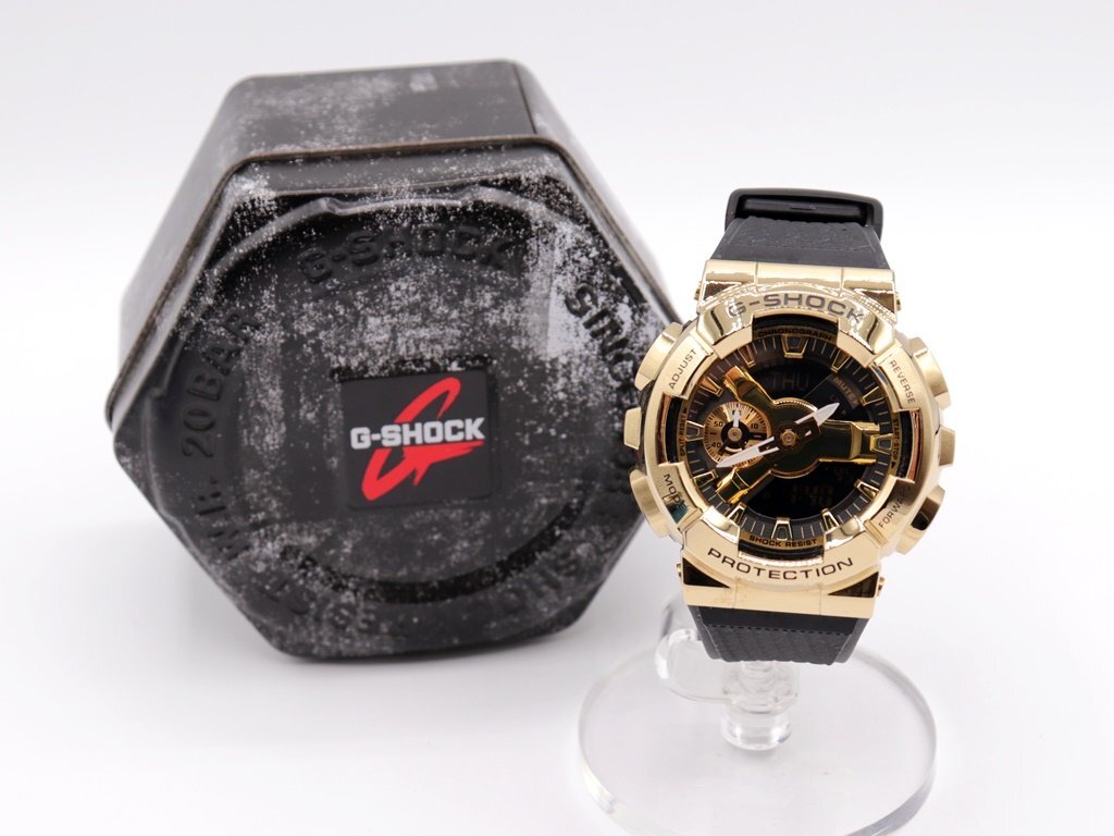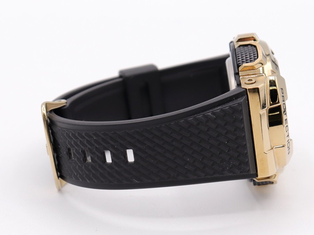 【素材】ステンレススチール/樹脂 【サイズ】 ・ケース幅:約48.8mm(リューズ含まず) ・ケース厚:約16.9mm ・腕回り:最大約21.0cm 【ムーブメント】クオーツ 【カラー】文字盤:ブラック/ゴールド ベルト:ゴールド 【機能】 |