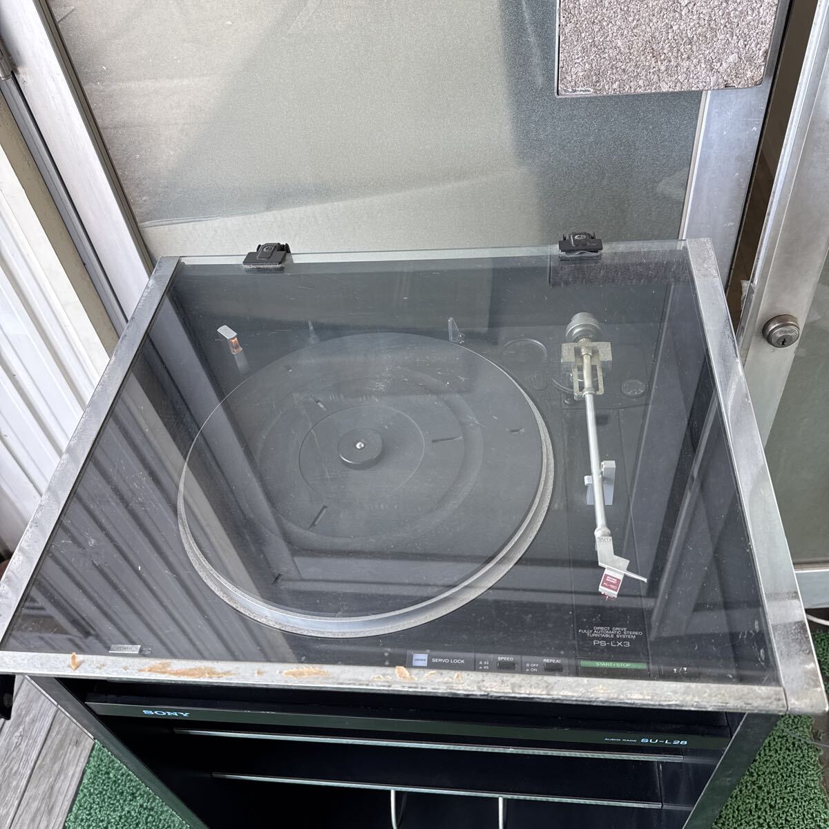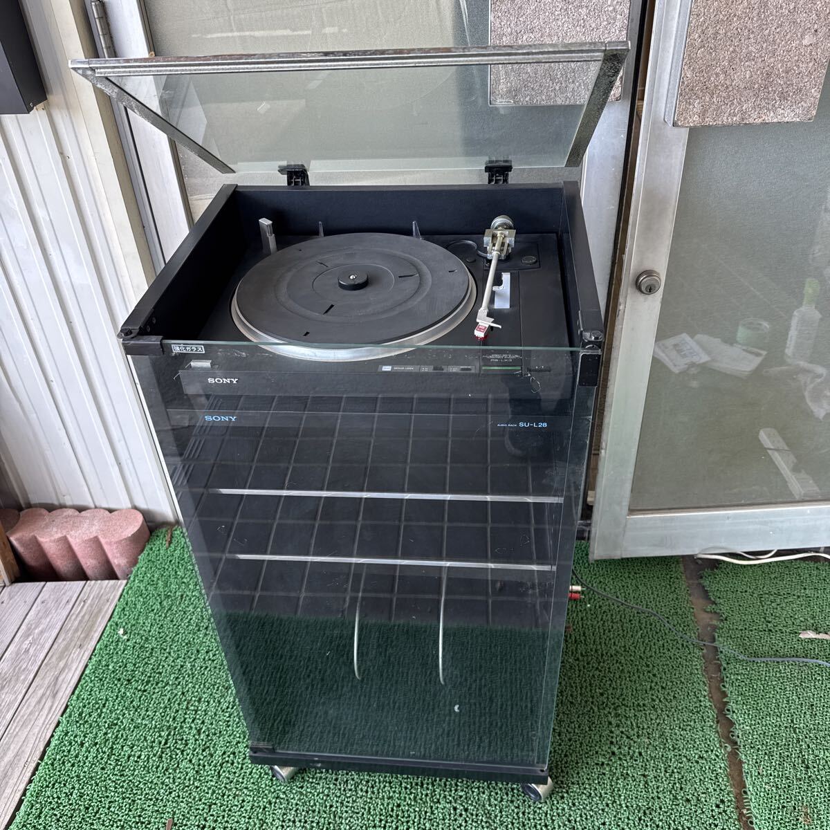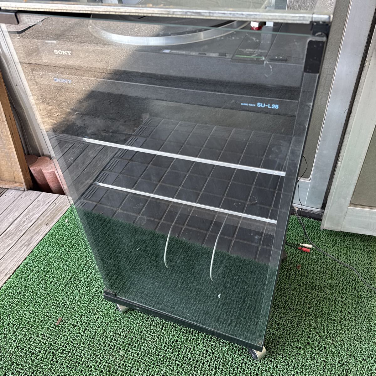 ◆中古 SONY/ソニー ターンテーブル オーディオラック セット レコードプレーヤー PS-LX3 ガラス扉ラック SU-L28 コロ付き レトロ 283-32