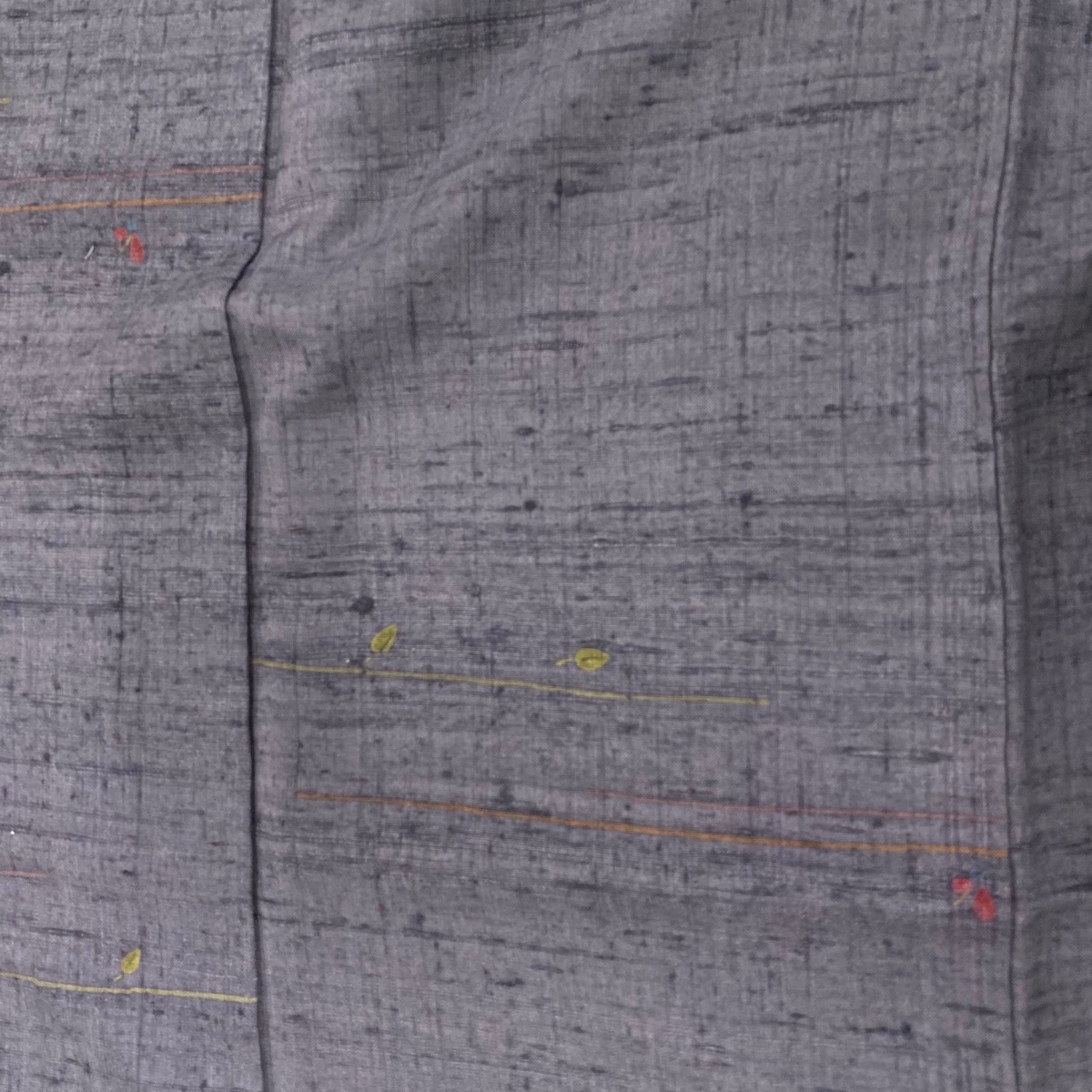 | 小紋 秀品 川村久太郎 落款 紬地 葉柄 縞 灰色 袷 身丈156 裄丈62.5 S 正絹 【中古】 |