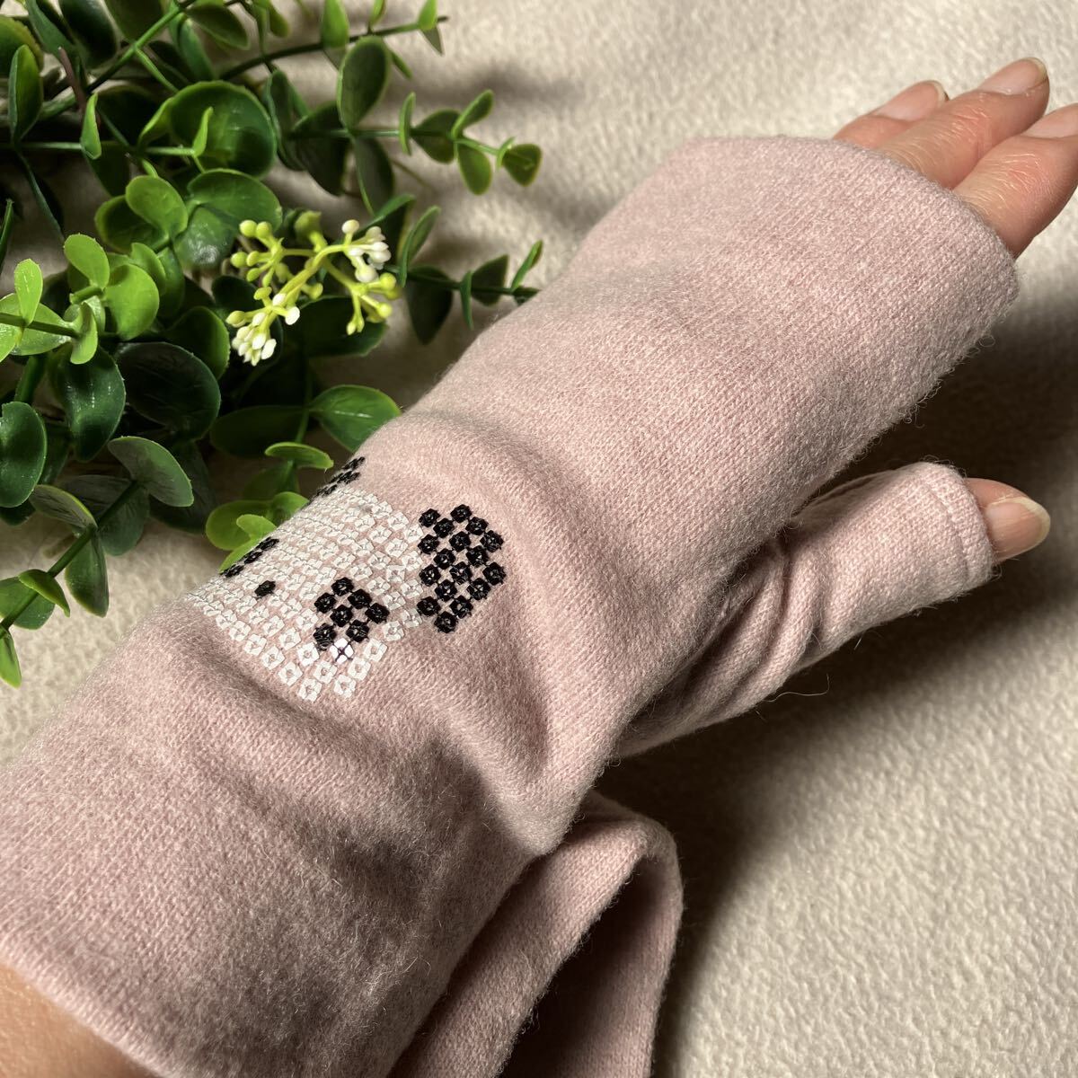 ★新品★ ANTEPRIMA アンテプリマ スパンコール パンダ カシミヤ混 手袋 指先が出る レディース くすみピンク系