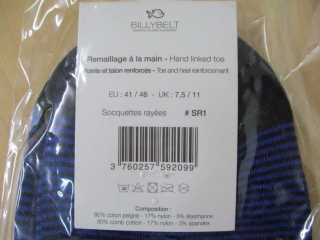 | ★★商品詳細★★ 【未使用保管品】BILLY BELT ビリーベルト 靴下 ソックス メンズ 3足セット まとめ売り サイズ 25.5-29㎝ サイズ: 日本 25.5-29cm EU 41/46 UK 7.5/11 詳しくはメーカーホームページ等でご確認下さい。 現状渡しとなりますので、必ずPCより画像のご確認をお願い致します。 当方詳しくない為、画像のみでご理解・ご納得頂けた方のみご入札下さい。 ※注意※ 未使用品ではありますが保管品の為、画像では分かりづらいキズや汚れ等が有る場合がございます。 神経質な方や、完璧な物を求める方はご入札をお控え下さい。 ★★ご入札後の取り消しにつきましてはいかなる場合であっても一切お受けできません★★ ※商品説明・発送方法・ストア規約をよくご確認の上、責任を持ってご入札をお願い致します。 ※発送方法および送料につきましては下記に記載がありますのでご確認お願い致します。 ※発送方法はネコポスのみです。 ※宅配業者の指定・着払い等には対応出来ませんので予めご了承下さい。 ※発送方法および送料についての質問にはお答え致しかねます。 ★★支払詳細★★ 弊社指定支払い方法 ★★最後までお読みください★★ ご落札後の返品・キャンセルはお受けできかねますので、くれぐれも慎重にご入札頂けますよう、重ねてお願い申し上げます。返品・キャンセルはお断りさせて頂いておりますが、お客様の御都合で返品・キャンセルをご希望される場合は、落札金額の30%をキャンセル料として頂きます。 ご落札後に、連絡を頂けないといった事例があります。 次点の方にお譲りするため、早期に取り消しをさせて頂く場合があります。 スムーズで、円満なお取引を望んでおりますので、何とぞご承知置き下さい。 | ||