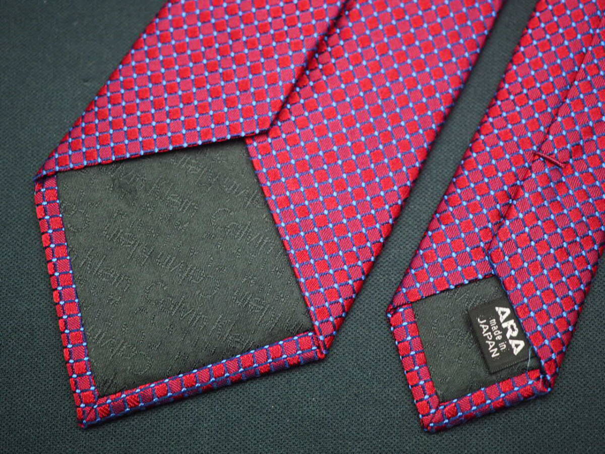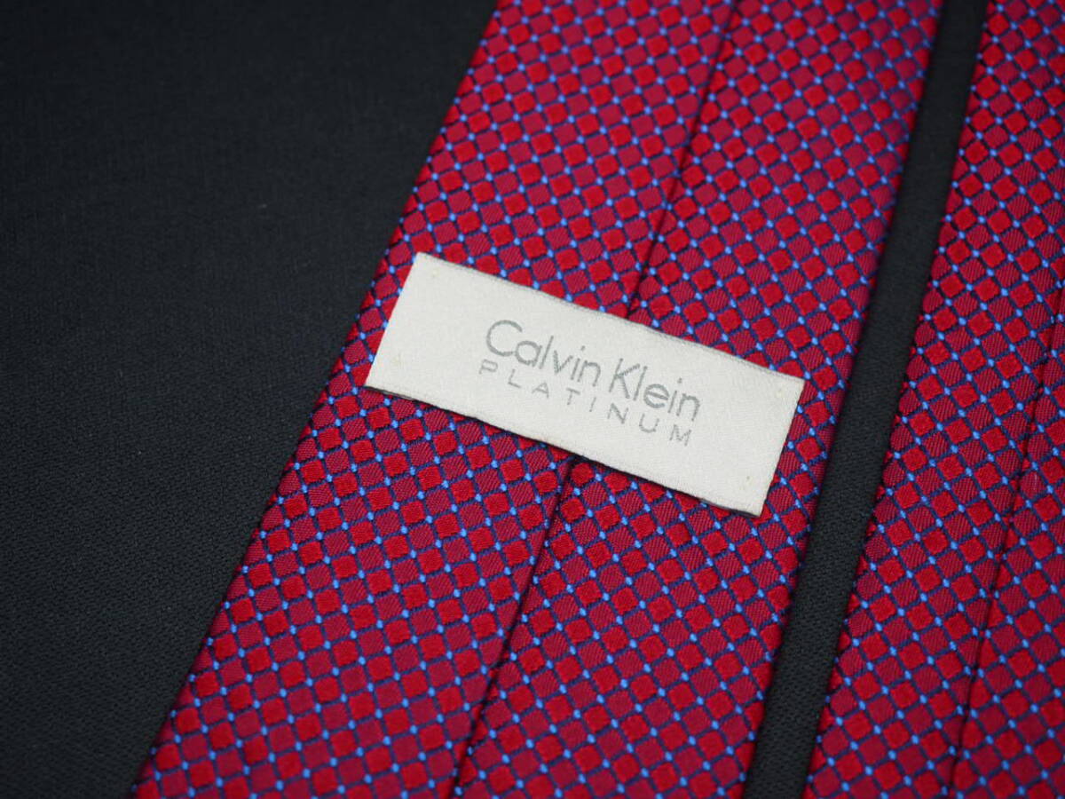 美品【Calvin Klein カルバンクライン】 G1008 赤 ネイビー系 SILK ブランド ネクタイ 古着 良品 転売 仕入