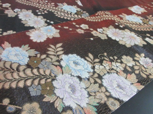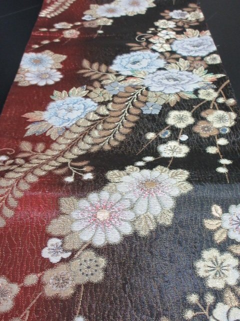 | 商品名 | 1円 良品 袋帯 絹 化繊 和装 和服 枝垂れ花 草花 牡丹 お洒落 六通柄 長さ434cm【夢職】★ |
