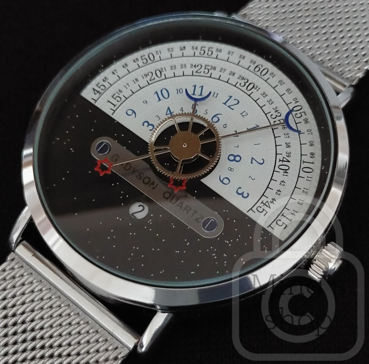 ※ロットにより文字盤中央より下にある「GADYSON QUARTZ」の印字が異なる記載の場合がございますが、機能や仕様は全く同じとなります。