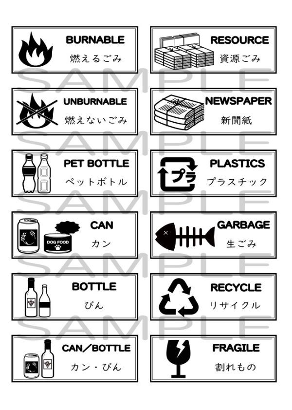 【耐水・透明シール】ゴミ分別ラベル光沢シールです。