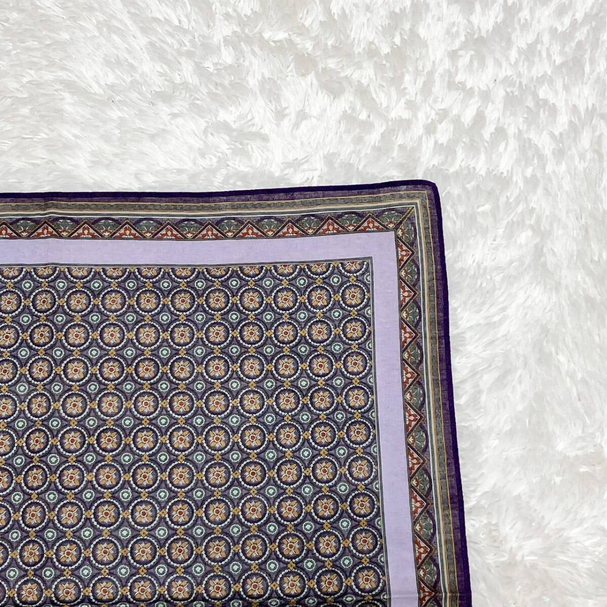 Roberto イタリア製 スカーフ 幾何学模様 パープル系 × グリーン × レッド × アイボリー エレガント
