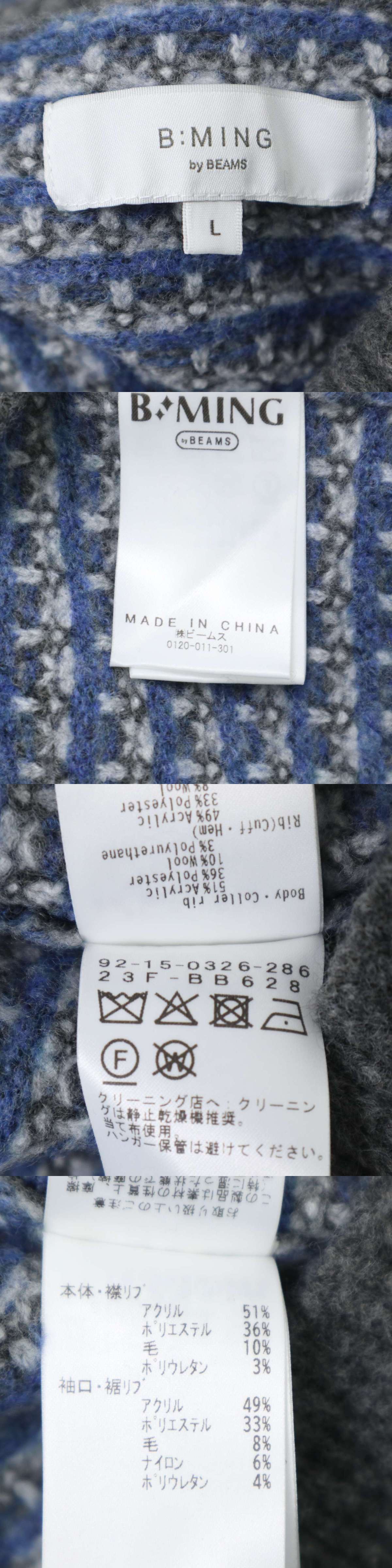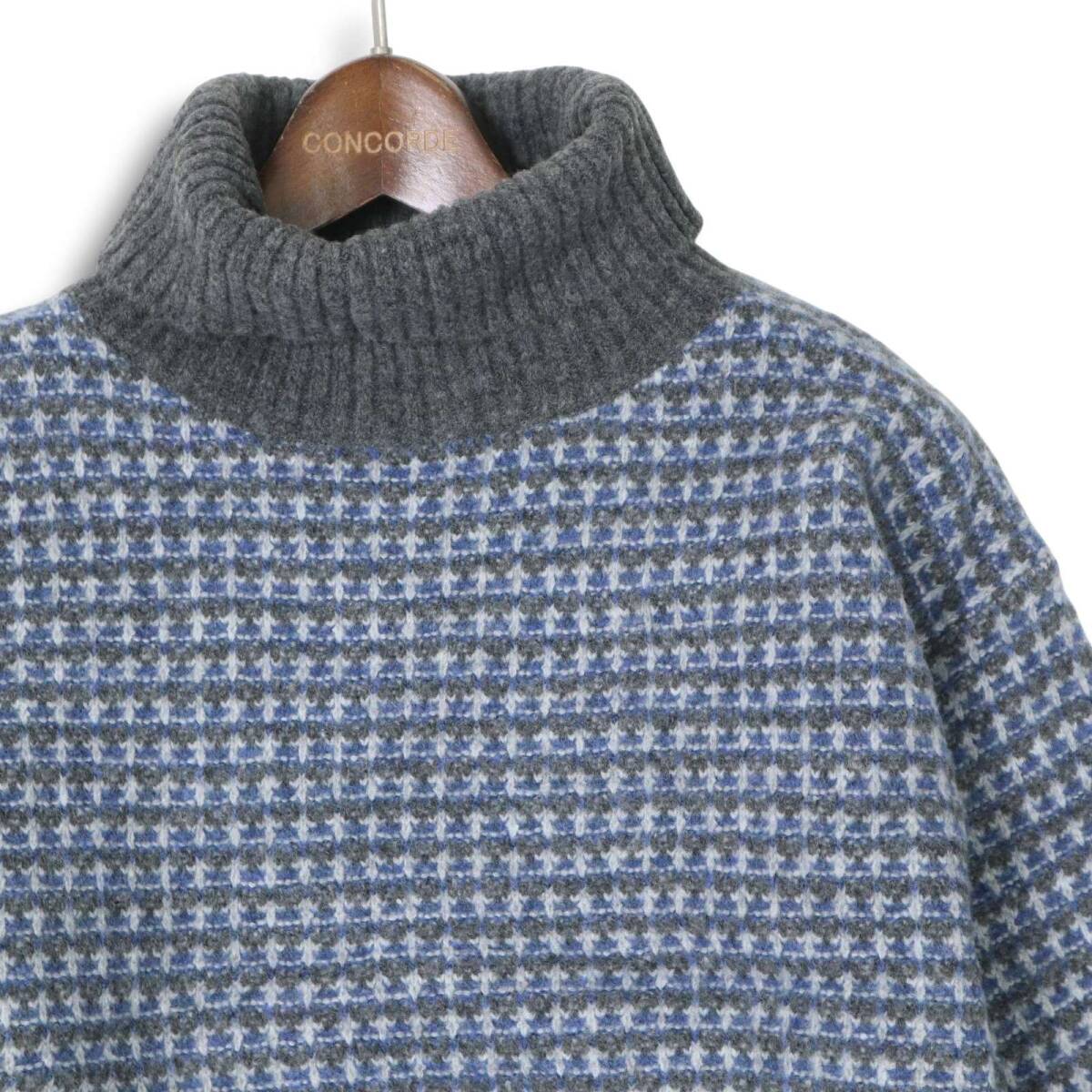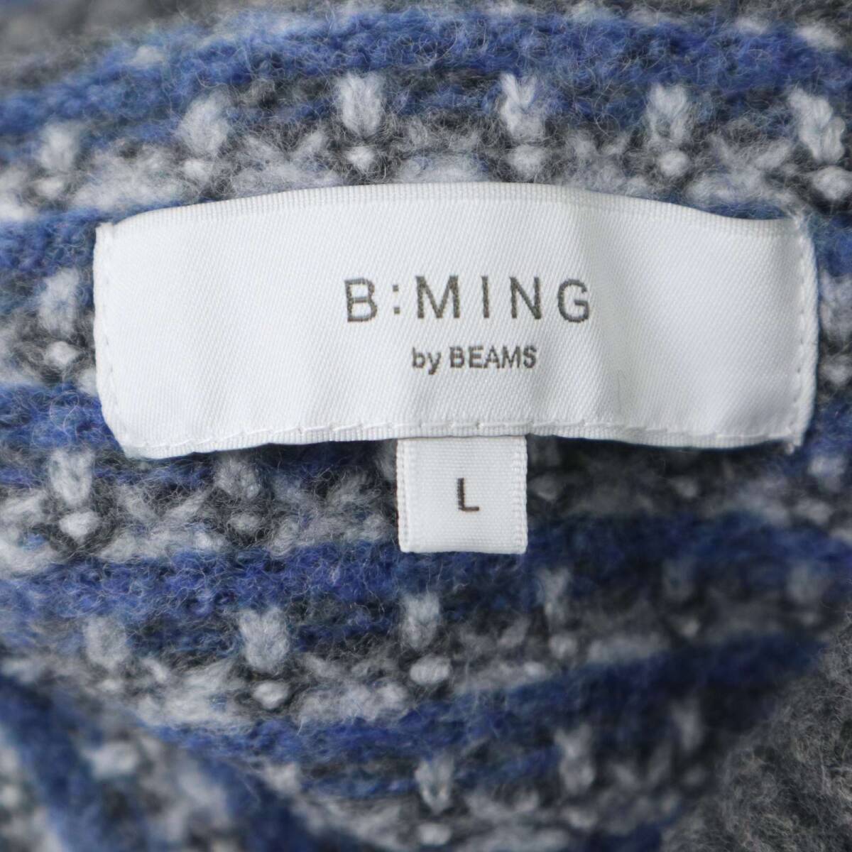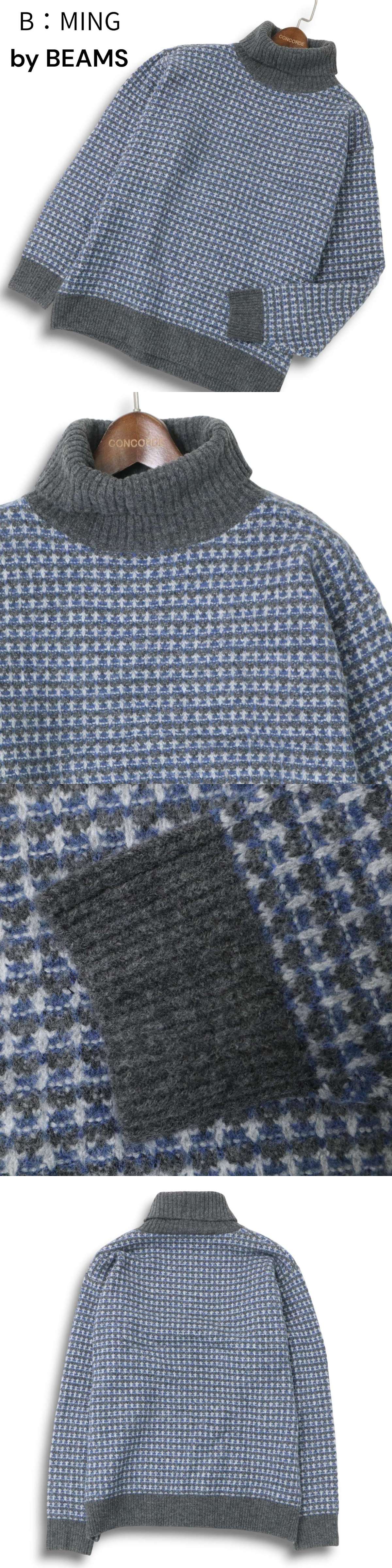 23AW★ B:MING by BEAMS ビームス 秋冬 ウール混★ チェック 柄編み タートルネック ニット セーター Sz.L メンズ