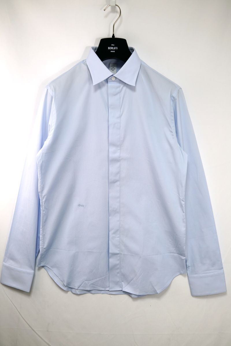 BERLUTI ベルルッティ 1895 PARIS ストレッチ コットン ポプリン シャツ パステル ブルー 41サイズ R23HTL68 001【中古】新古品