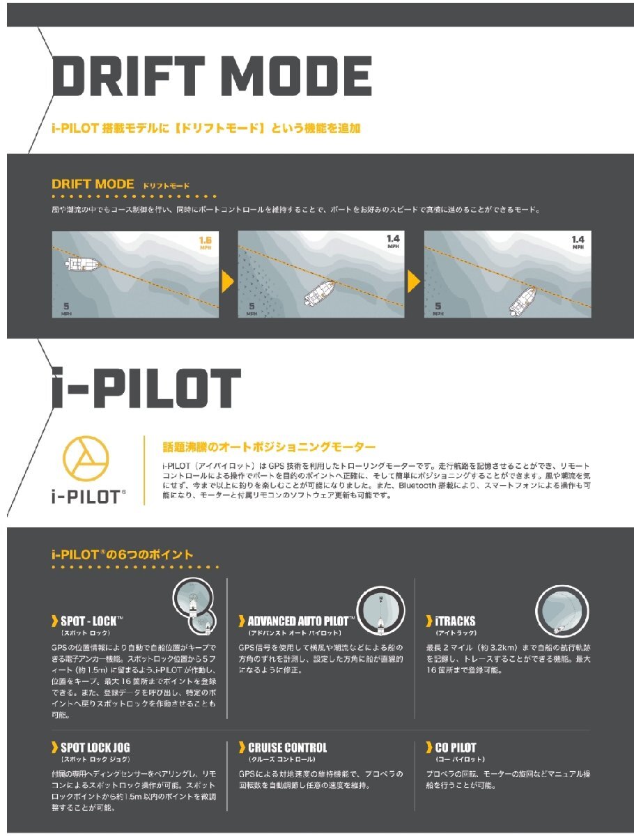 i-PILOT(アイパイロット)はGPS技術を利用したトローリングモーターです。