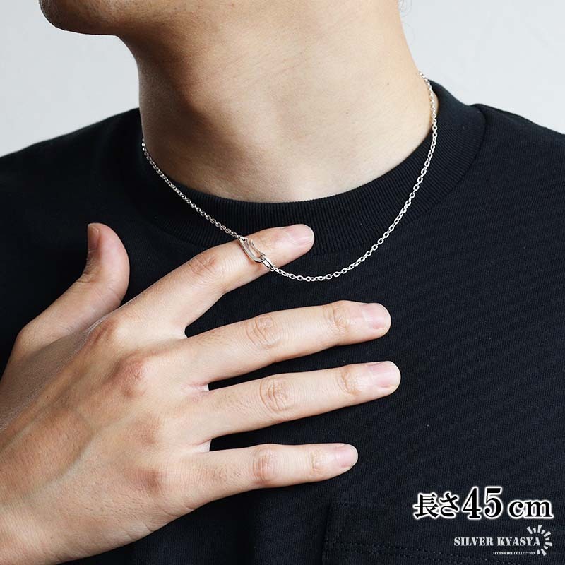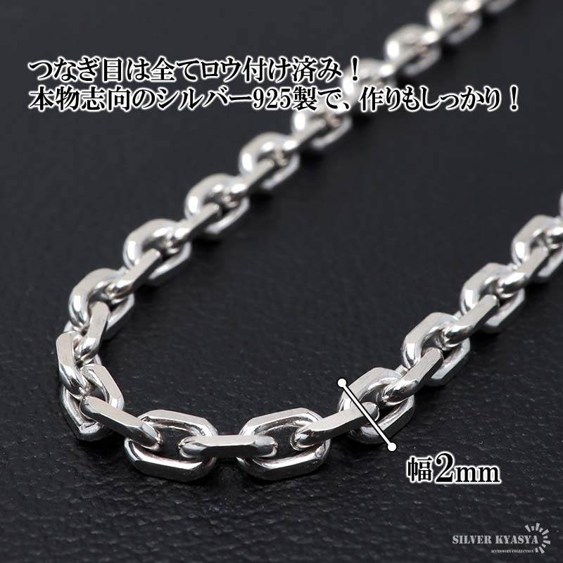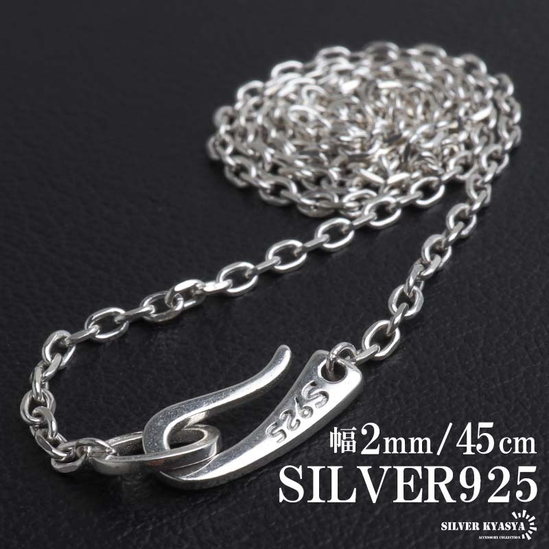 シルバー925 あずきチェーンネックレス 幅2mm ホワイト ネックレスチェーン メンズネックレス 45cm 金アレ対応