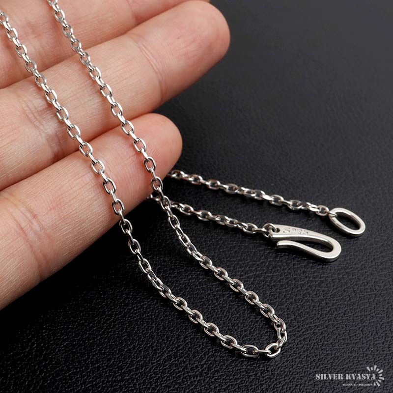通常のフックに比べて平面状に作成。SILVER KYASYA独自のデザインで見た目もスマートでカッコ良く、着け外しもコツを掴めば簡単で、着用時には外れにくい仕様となっています。
