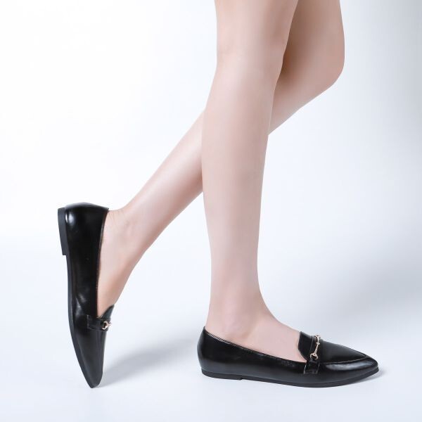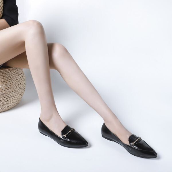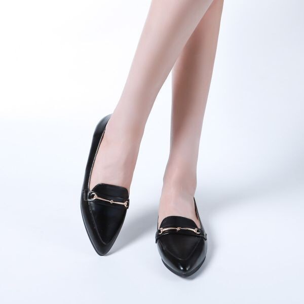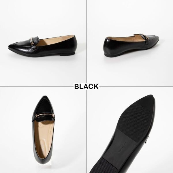 20442 アウトレット レディース フラットパンプス ブラック スムース 23.5cm ローヒール パンプス ポインテッドトゥ バレエシューズ