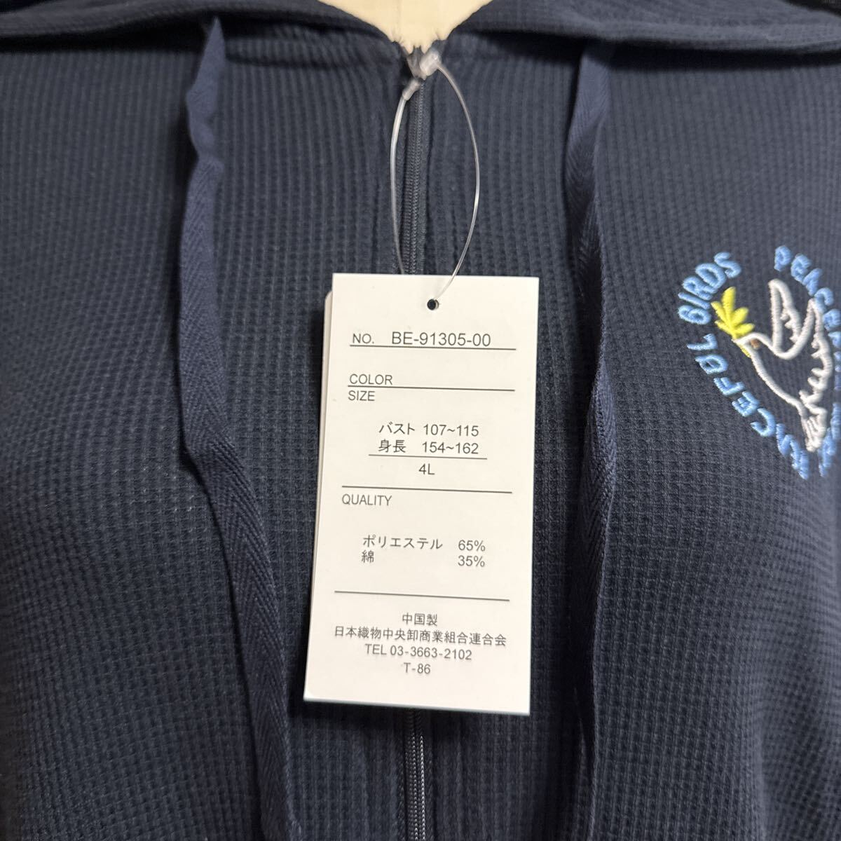 KN3407 *4L 大きいサイズ 手の甲まですっぽりネイビーパーカー  フーディー