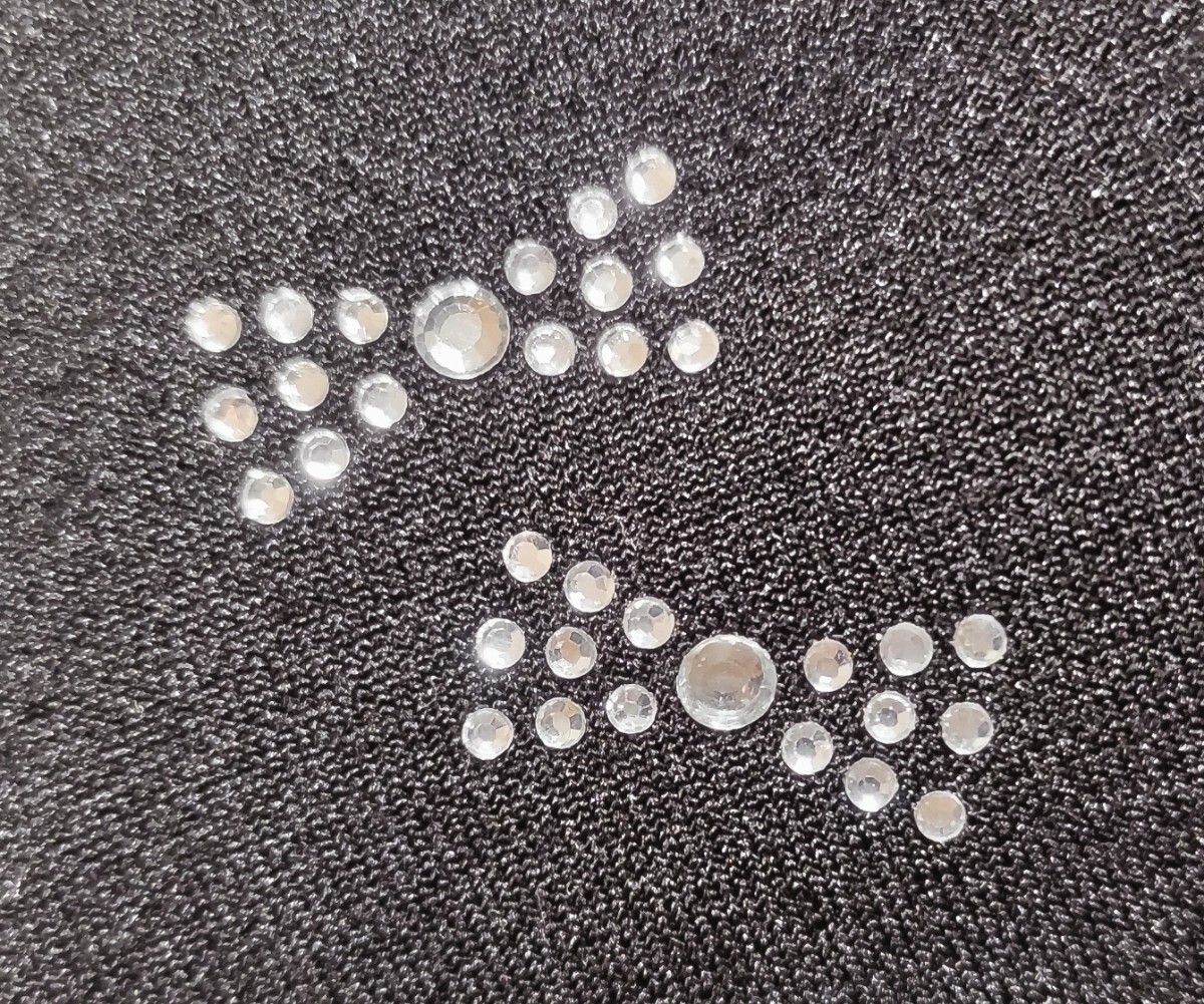 両外側にリボンの形のスワロフスキー、キラキラ光ります。