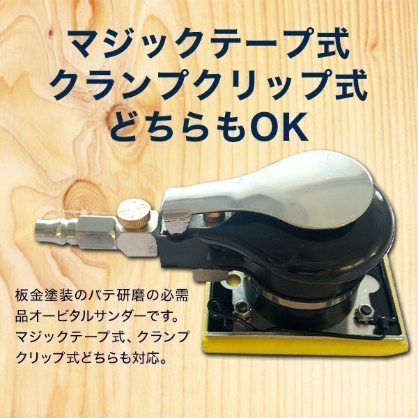 エアー オービタルサンダー 角型 73 × 100 mm マジックテープ 式 クランプ式 両対応 塗装 剥離 鈑金パテ 車 バイク 整備 メンテナンス