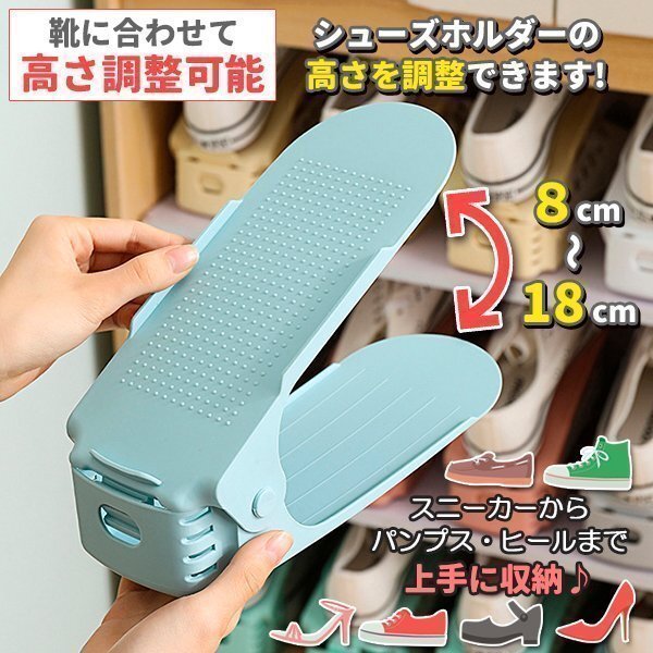 シューズホルダー 靴収納 8足分 スニーカー収納 ブルー 玄関収納 くつホルダー 靴ホルダー 靴 収納 靴箱整理 靴 靴箱 下駄箱 玄関 スリム