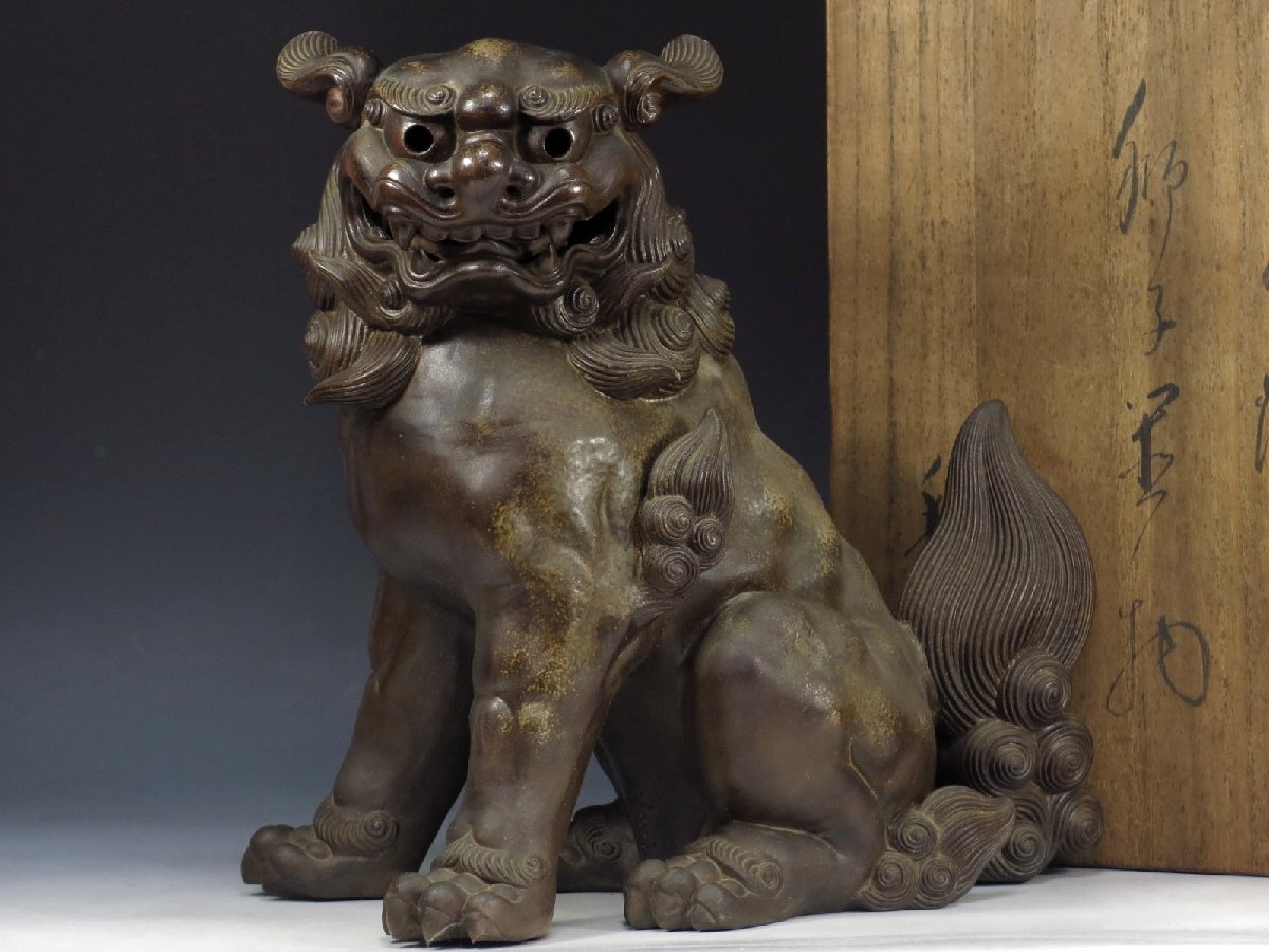 | 商品名 | 初代 柴岡香山 備前 獅子 置物 大 高さ32cm 5.7kg 魔除け 厄除 縁起物 共箱 備前焼 |