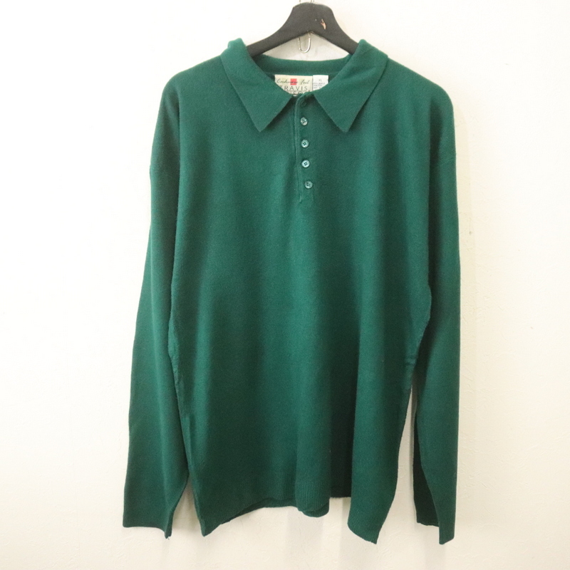 商品名 r511 90sビンテージ TRAVISBENSON 長袖ニットポロシャツ■1990年代製 表記XLサイズ グリーン 無地 アクリルニット アメカジ 古着
