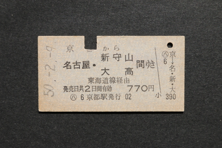 乗車券 京都から 名古屋・新守山 大高間ゆき 770円