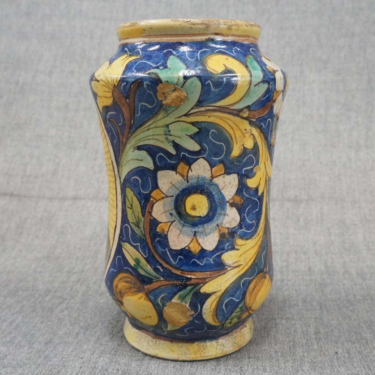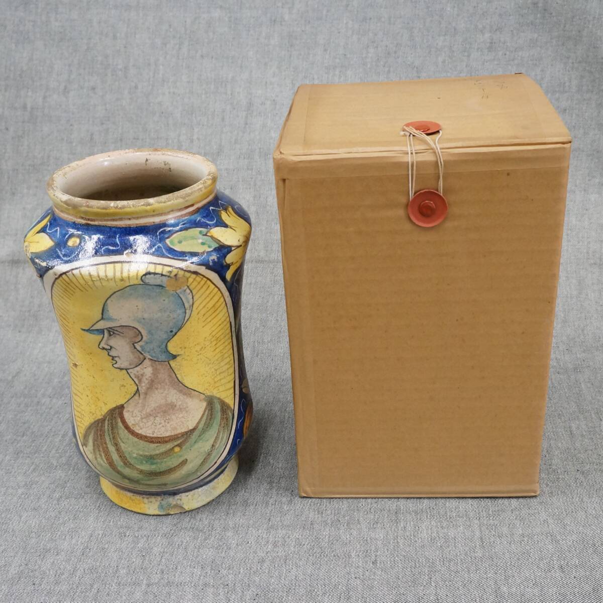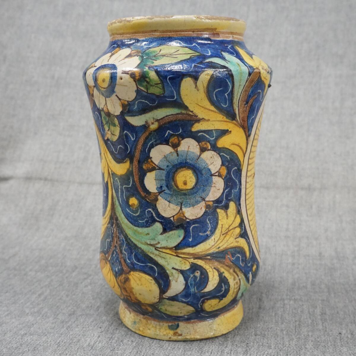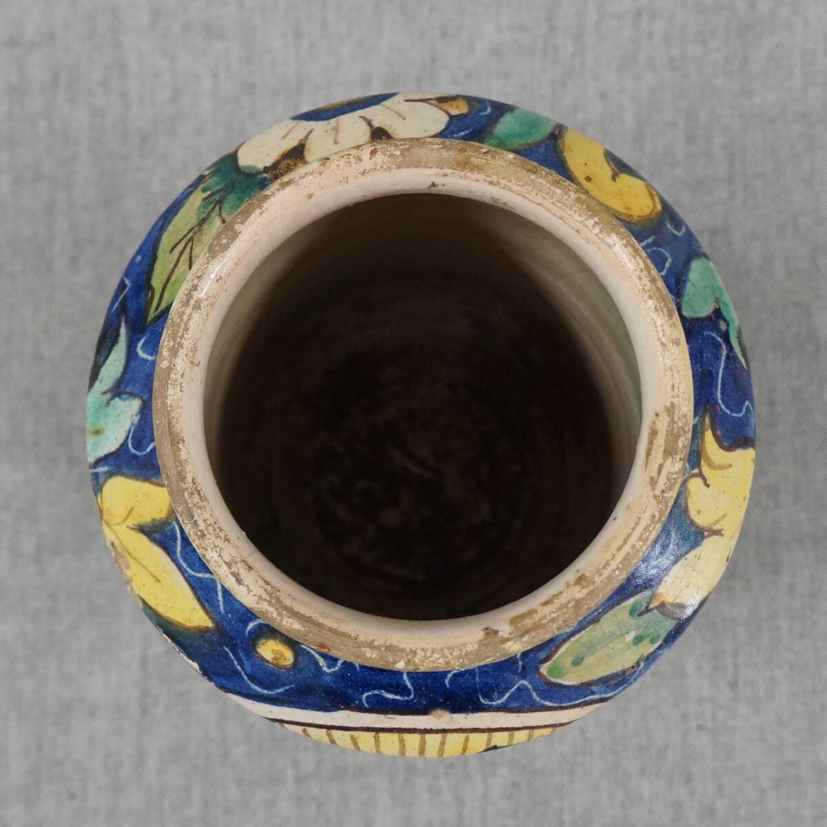 | マジョリカ 壺 高さ24.5cm 直径15cm マヨリカ 壷 アルバレロ スペイン イタリア デルータ オランダ デルフト 花瓶 花入 うぶ出し | ||
