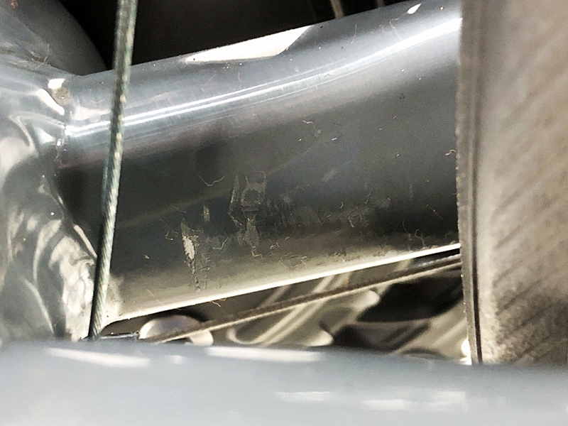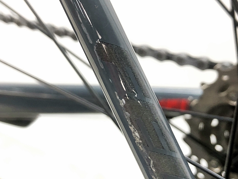 フレーム、その他外観:トップチューブ、ダウンチューブ、シートチューブ、フレームエンド、左右チェーンステー内側、左右フロントフォーク、クランク、リアディレイラー、ホイール、STIレバー、シートポスト、ステム、サドル、バーテープにキズがあります。