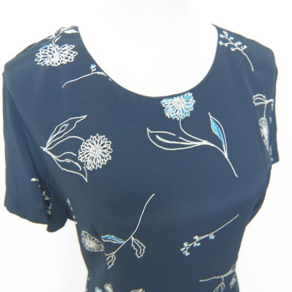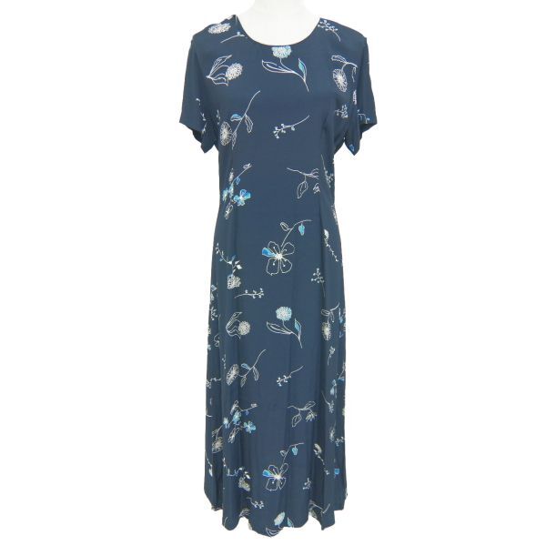 【即決】◆LAURA ASHLEY ローラアシュレイ◆半袖ワンピース ロング丈 ネイビー サイズ13 #969895