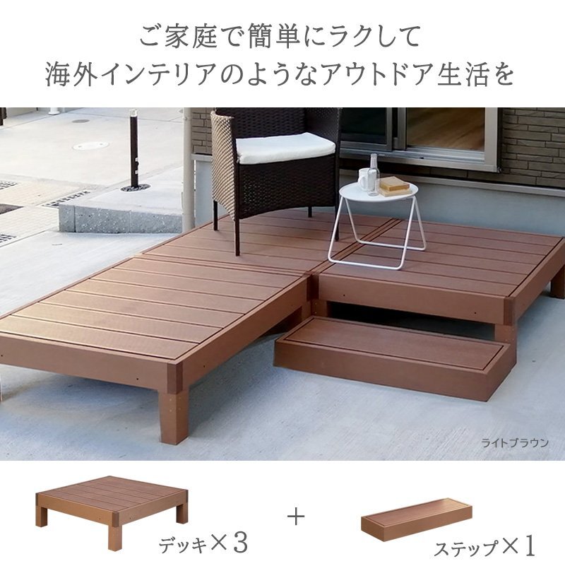 【ライトブラウン】のウッドデッキ×4とウッドステップ×1の5点セットの販売ページです。