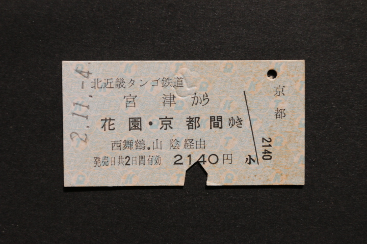 北近畿タンゴ鉄道 宮津から 花園・京都間ゆき 2140円