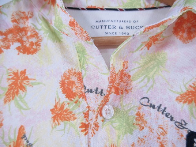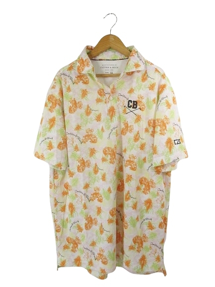 カッター&バック cutter&buck ポロシャツ 開襟 半袖 花柄 ボタニカル ロゴ 刺繍 LL オレンジ QQQ メンズ