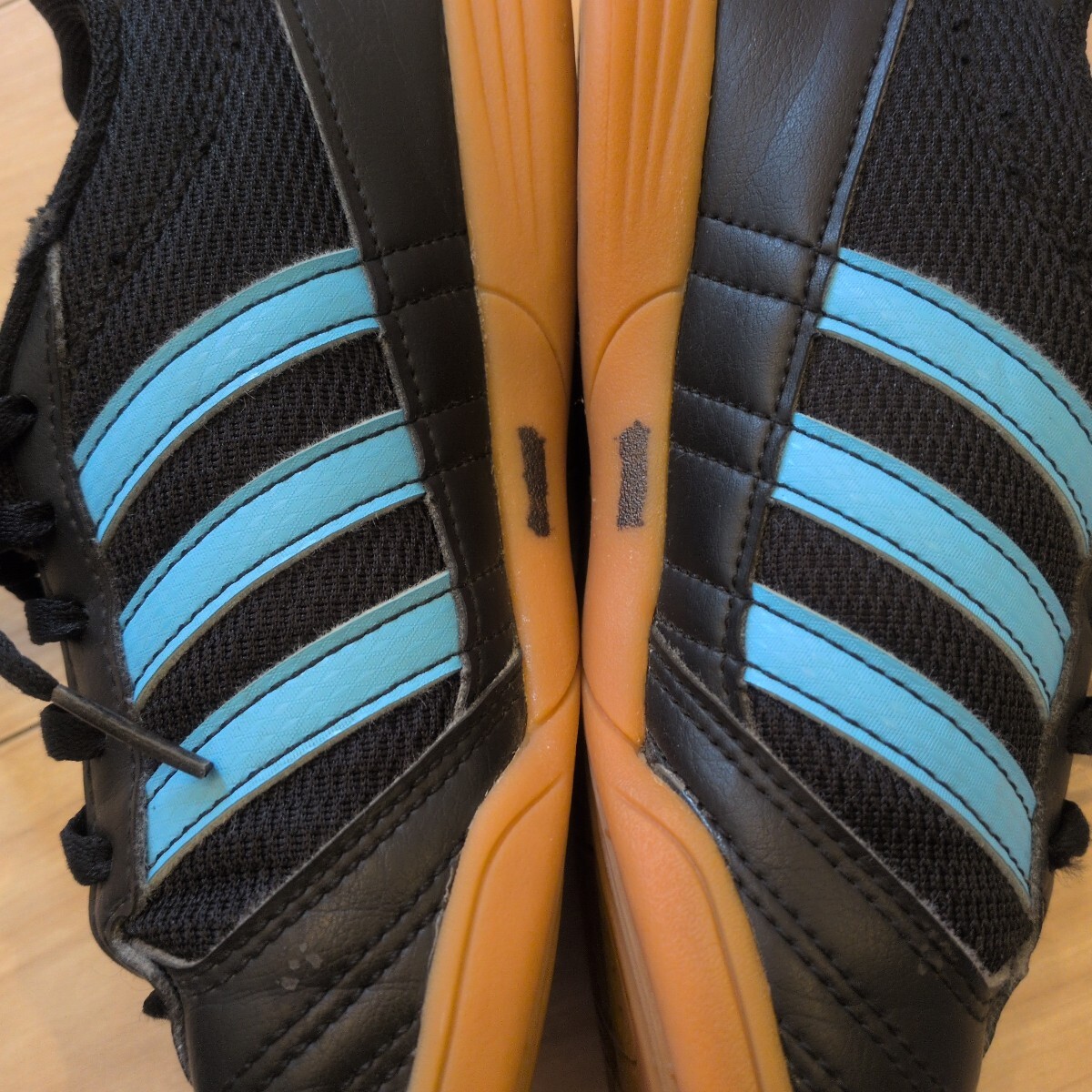 フットサルシューズは土踏まずのあたりにネームを消した跡があります(6枚目写真)。ご了承ください。