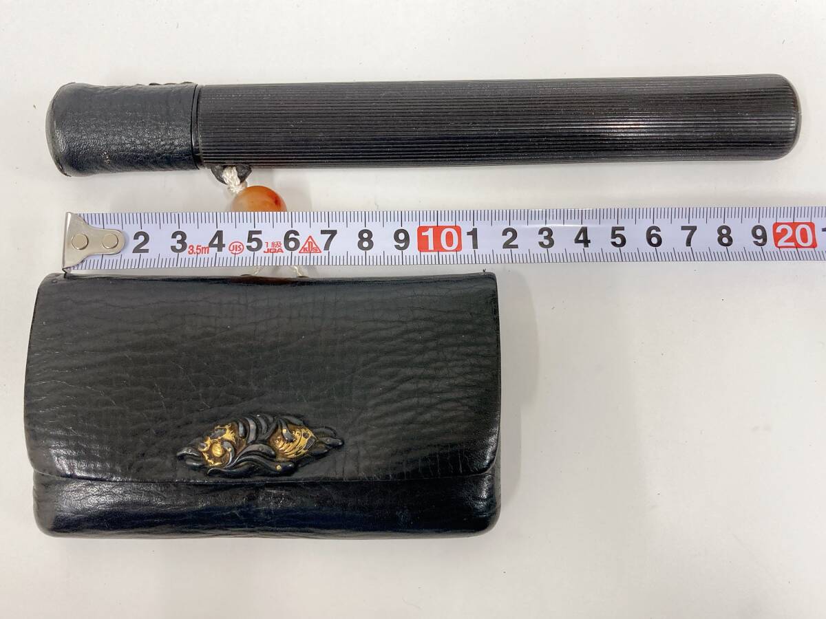 | 46744 煙草入れ キセル入れ トンボ玉メノウ アンテーク 携帯たばこ道具セット | ||