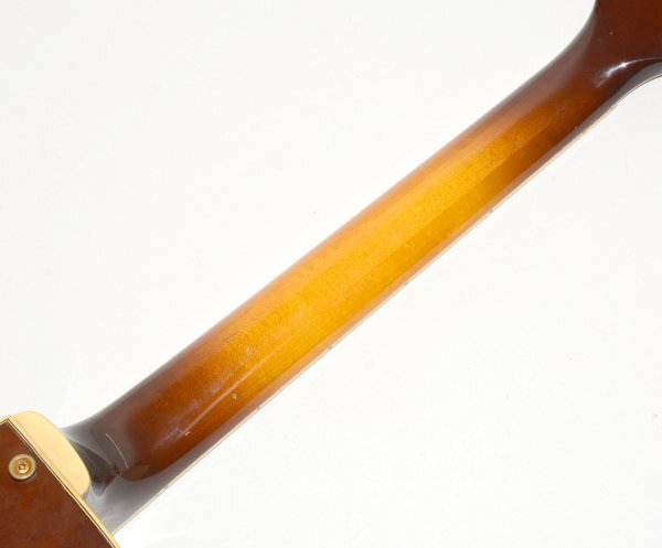 ・ボディ正面にスレ、キズ、塗装クラック、打痕、ヤケ等が見られます。 ・ボディ正面バインディング付近に隙間ができています。 (画像にてご確認ください。) ・ボディ側面、底面にスレ、キズ、打痕が見られます。 ・ボディ底面に穴が空いた状態です。 (画像にてご確認ください。) ・ボディ背面にスレ、キズ、打痕が多く見られます。 ・バインディングにヤケが見られます。 ・ネックにスレ、キズ、打痕が見られます。 ・ネックジョイントに塗装クラックが見られます。 ・ヘッドにスレ、キズ、打痕、塗装剥がれが見られます。 ・ピックガードにスレ、キズが見られます。 ・ペグ、ジャック、ブリッジ等金属部分にスレ、小キズ、くすみ、サビ等が見られます。 ・ネジにスレ、小キズ、くすみ、サビ等が見られます。 ・ノブにスレ、小キズ、多少のくすみが見られます。 ・セレクタ―スイッチにスレ、小キズ、ヤケ等が見られます。 ・ケースにスレ、キズ、汚れ、ヤケ、金属部分のサビ・腐食等が見られます。 全体的にキズ、スレ、打痕等が見られ使用感のある状態です。 上記記載箇所以外に説明不足、見落とし等がある場合がありますので、 状態に関しては画像にてご判断頂きますようお願い致します。 ネックはほぼストレートの状態ですが、多少順反りの状態です。 (現在の弦高は12Fで、1弦側:約1.5mm、6弦側:約1.0mm) 重量:約3.4kg、ナット幅:約42mm、スケール:約646mm |
