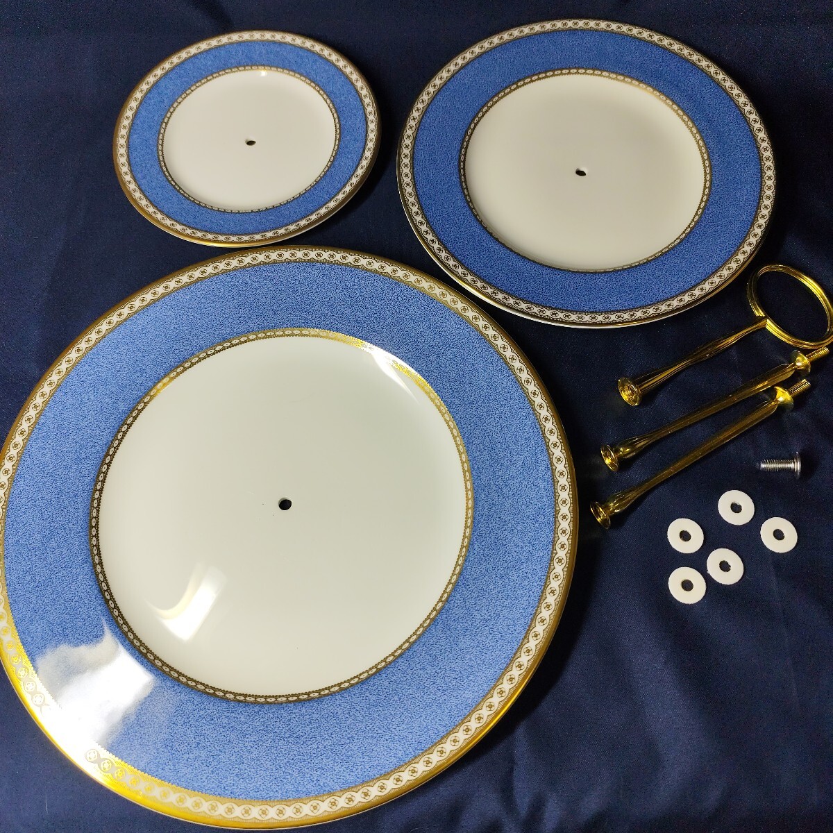 各プレートの直径は、大皿が約27.4cm、中皿が約20.6cm、小皿が約15.4cmです。組み立てた時の高さは、約37cmです。(多少の誤差はご容赦ください。)