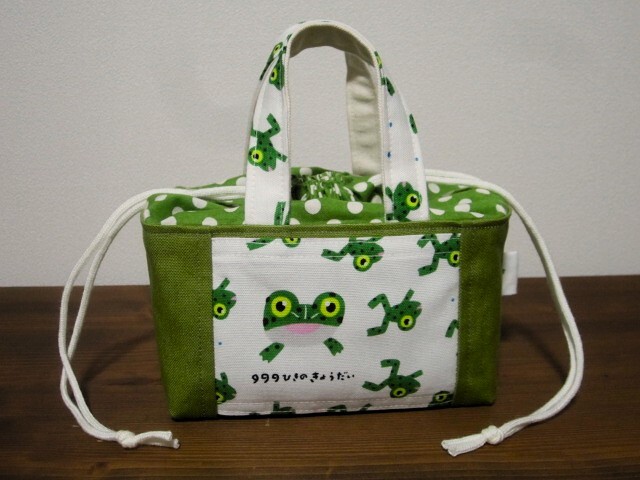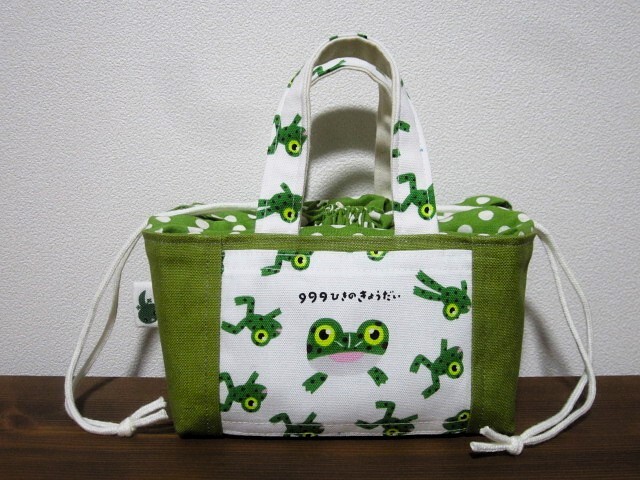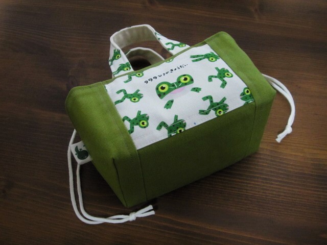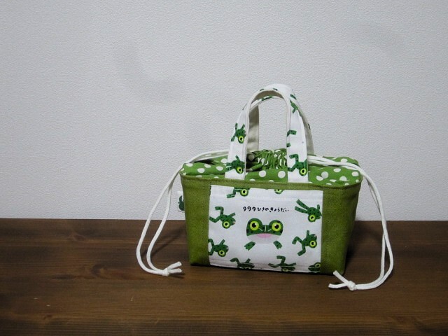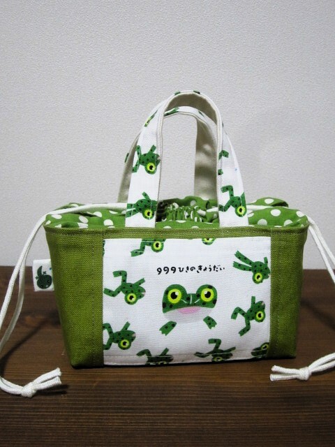 *ハンドメイド* かわいいカエルさん!(^^)! ミニ ランチバッグ お弁当 巾着バッグ 豆トートバッグ かわいい!(^^)!生き物 おにぎりポーチ♪
