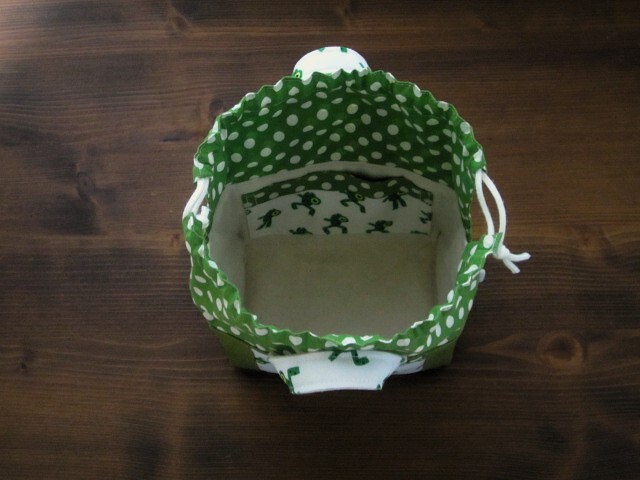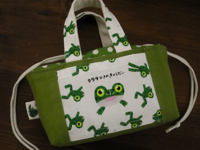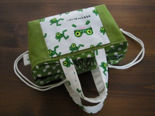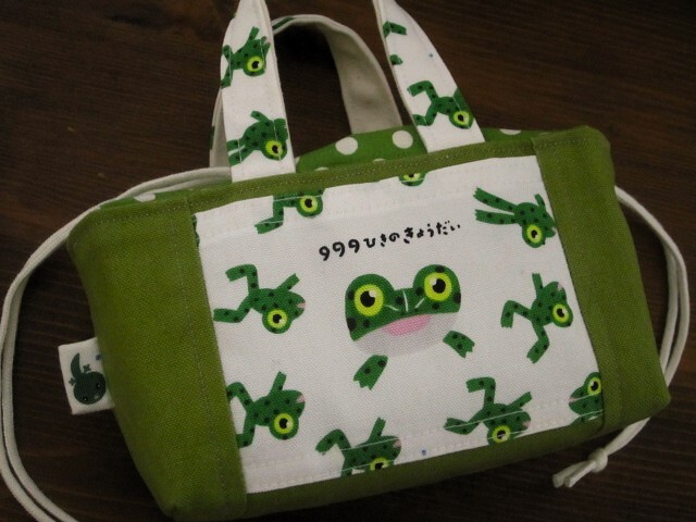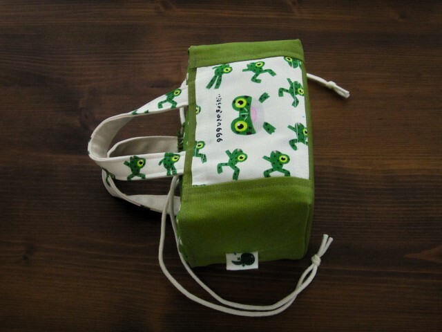 かわいいカエルさんの生地でミニランチバッグや整理バッグなどに
