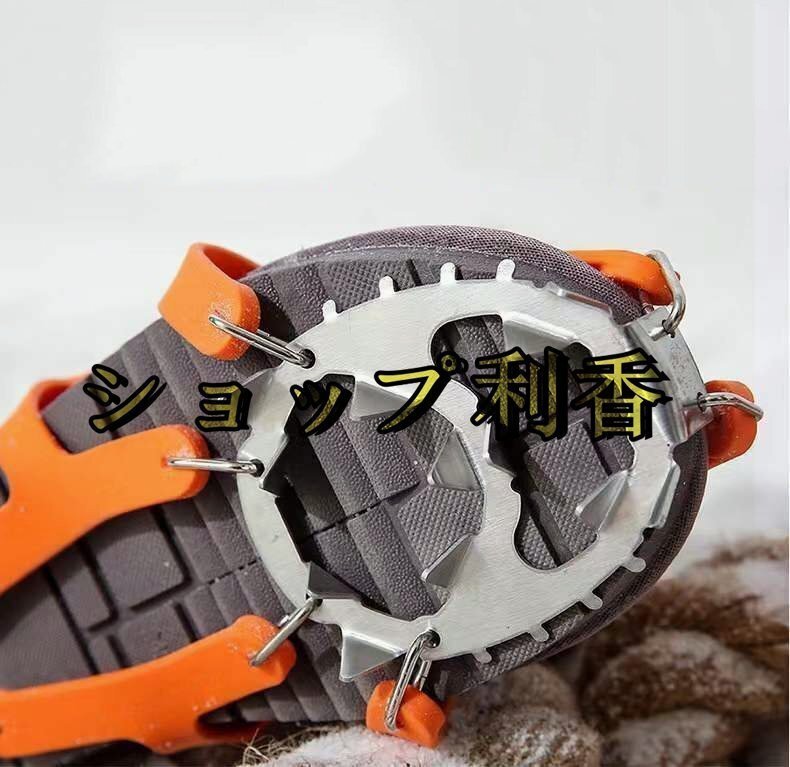 サイズ:フリー 22.5cm~27.5cmまで兼用 爪は軽量でさびにくいステンレス鋼を採用しています。 強力な18本爪で、雪面や滑りやすい山の斜面に対してしっかり食い込ませることができ、安定感が増します。
