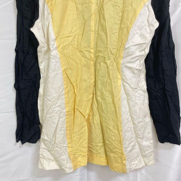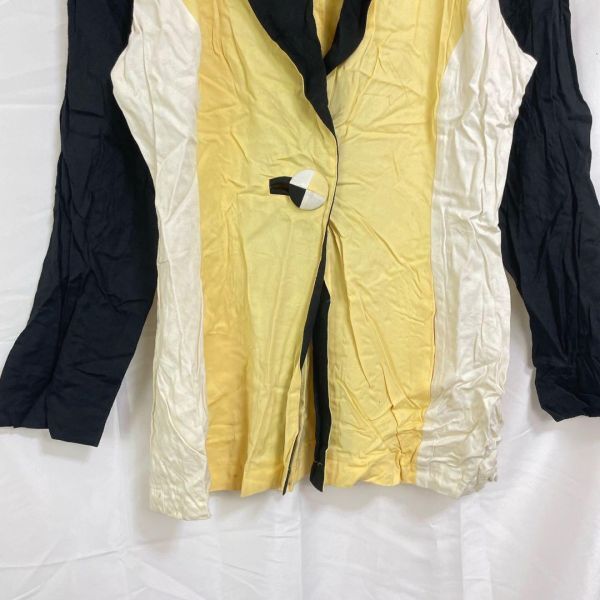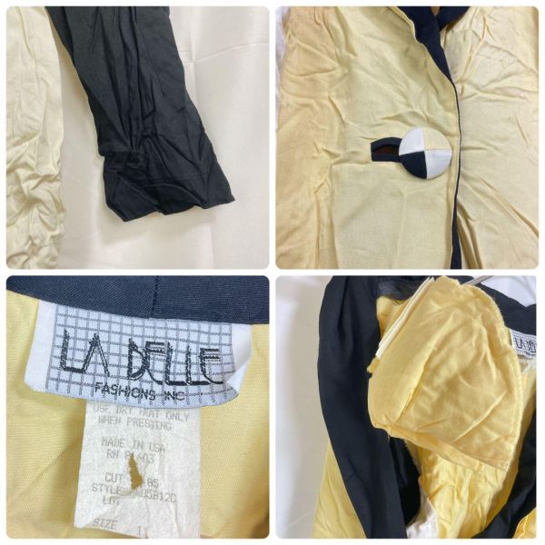 - ブランド:LA DELLE - サイズ表記:10(M~L) - 素材:レーヨン - カラー:イエロー×ネイビー×ホワイト - シーズン:春秋 - 服の特徴:マルチカラーブロッキングデザイン、テーラード風シルエット、肩パッド(取り外し可能) - ダメージ・汚れ詳細:しみ・若干の汚れあり しわあり - 袖の長さ:長袖 - 裾の長さ:ミドル丈ジャケット 03-110 即購入大歓迎・お得な割引各種あります 詳しくはプロフィールをご覧ください! 匿名&送料無料 海外輸入のため全て一点ものです 古着のため使用感・毛玉等があることもあります。写真で状態の確認を行なってからご購入ください おまとめ買いでお得な割引あります♪ 平置き採寸表→写真から確認いただけます! (素人採寸のため、多少の誤差はご了承ください) 商品状態に関しては、写真、商品説明欄に記載しております。着用回数、購入時期などはお答えできませんので、ご了承ください。着画、写真の追加もお断りしております。 簡易包装のコンパクト発送となります。 畳みシワはご了承の程、宜しくお願いいたします。 商品によっては圧縮してお送りするものもございます。 撮影環境や使用するモニター、反映されにくい色味など、 商品と画像に若干の色誤差が生じますことをご了承ください。 出品作業の際にしっかりと確認はしておりますが、シミなどの見落としがある場合もございますのでご了承下さい。 古着の取り扱いになりますので特有の匂い等がある可能性があります。ご理解のある方のみご購入の程お願い致します。