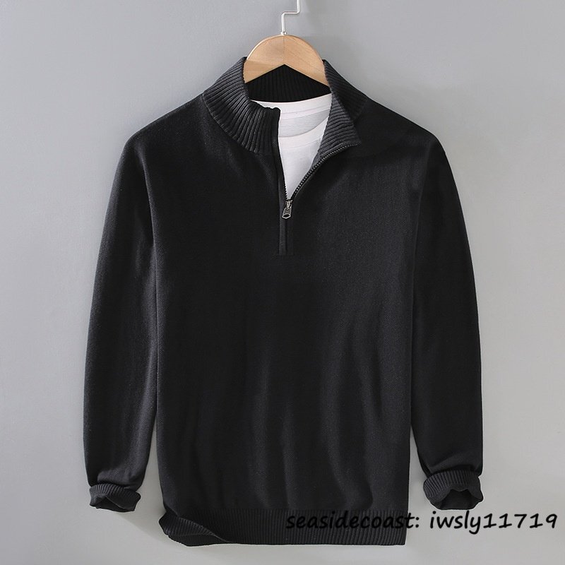 新品◆秋冬 ニットセーター 無地 ウール混 厚手 ハイネック コットン 柔らか 暖かい 長袖 トップス インナー アウター 防寒 ブラック L