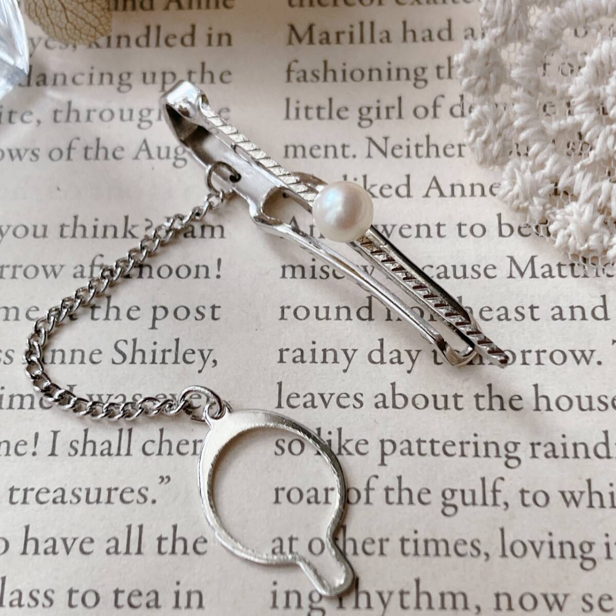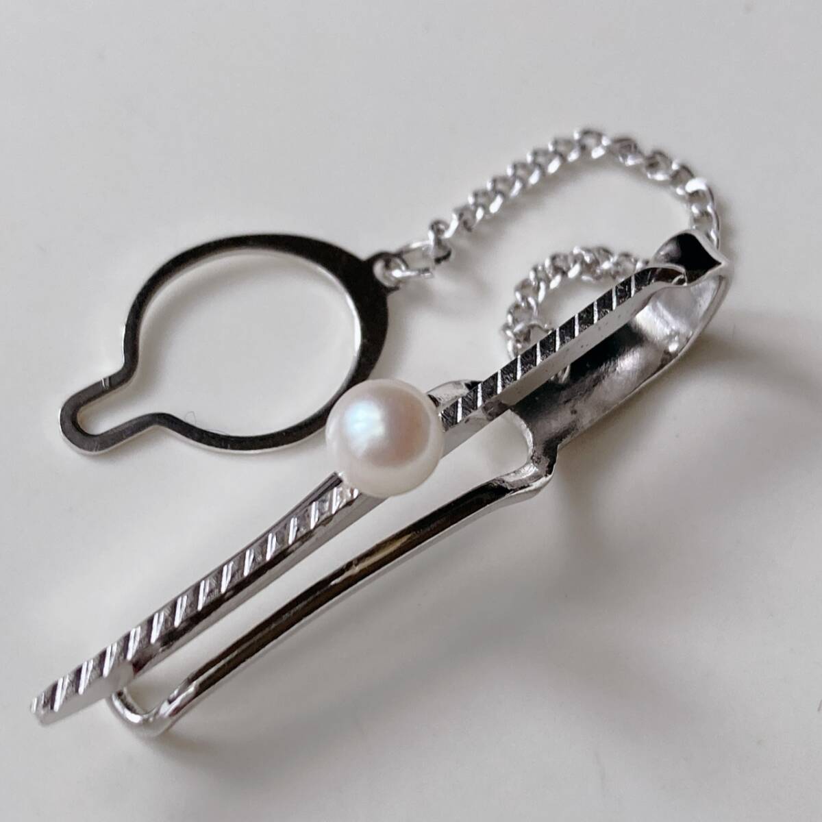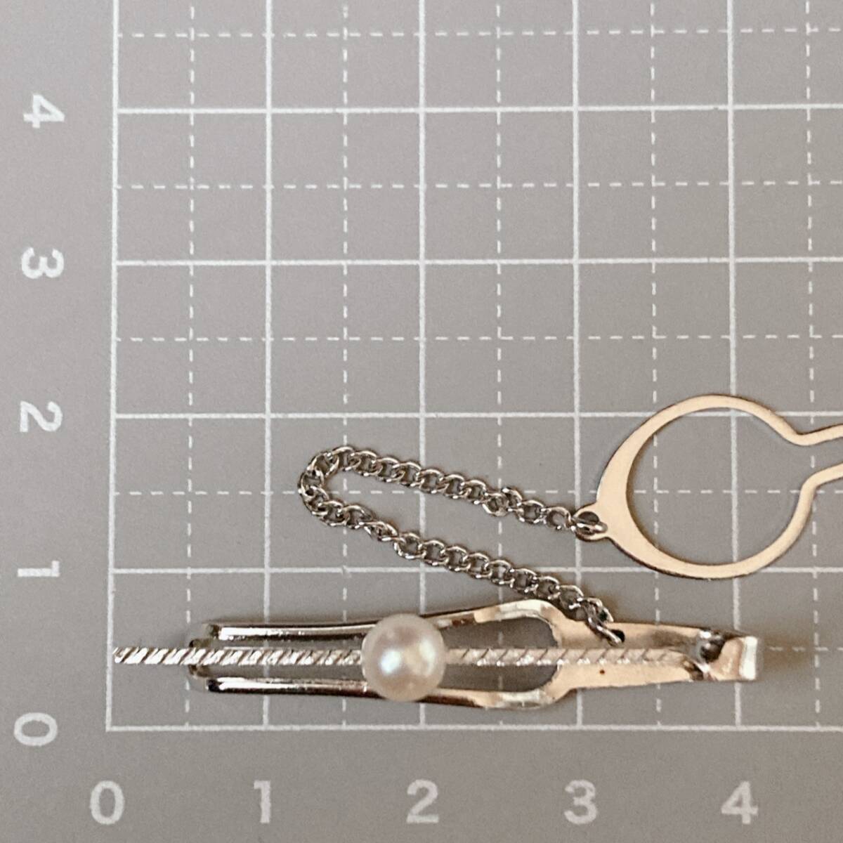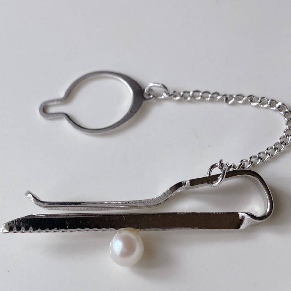 ヴィンテージタイピン シルバートーン パール チェーン タイバー ネクタイピン■Vintage jewelry accessoriesF0378