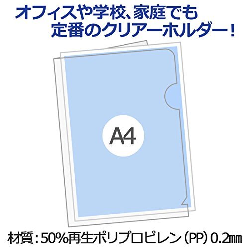 ・大切な書類の中身がすぐ確認できるクリアータイプのホルダーです。 ・少ない枚数も折り曲げずに持ち運びでき、とても便利です。 ・穴を開けずに綴じるファィルですので、書類を痛めません。 ・配布、提出物や郵送物の保護カバーとしても便利です。 ・会社では重要書類の保管や整理、ご家庭では科目別のプリントの整理や連絡簿の汚れの防止等にご利用下さい。