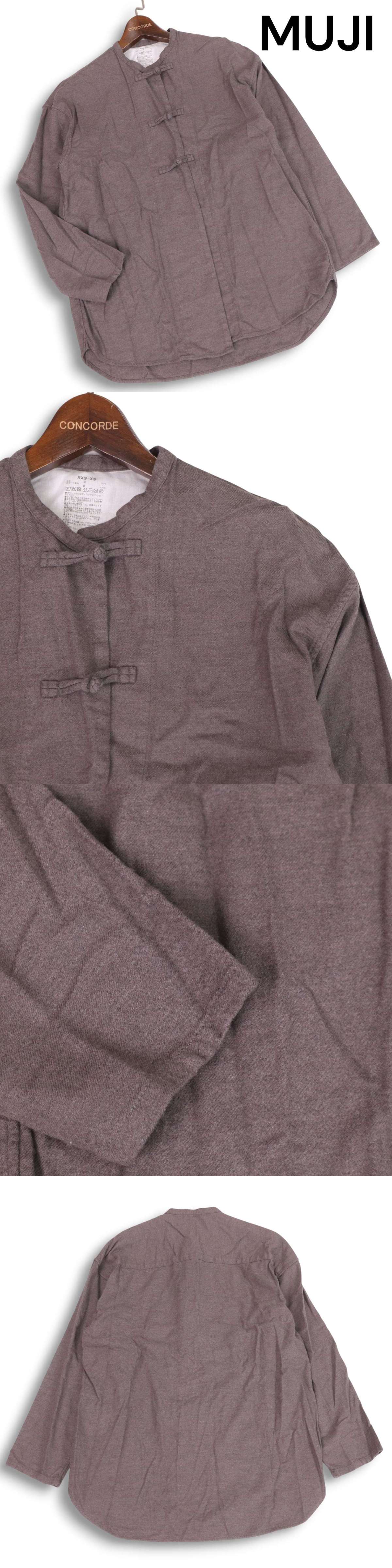 MUJI 無印良品 秋冬★ 長袖 フランネル カンフー チャイナ シャツ Sz.XXS-XS レディース
