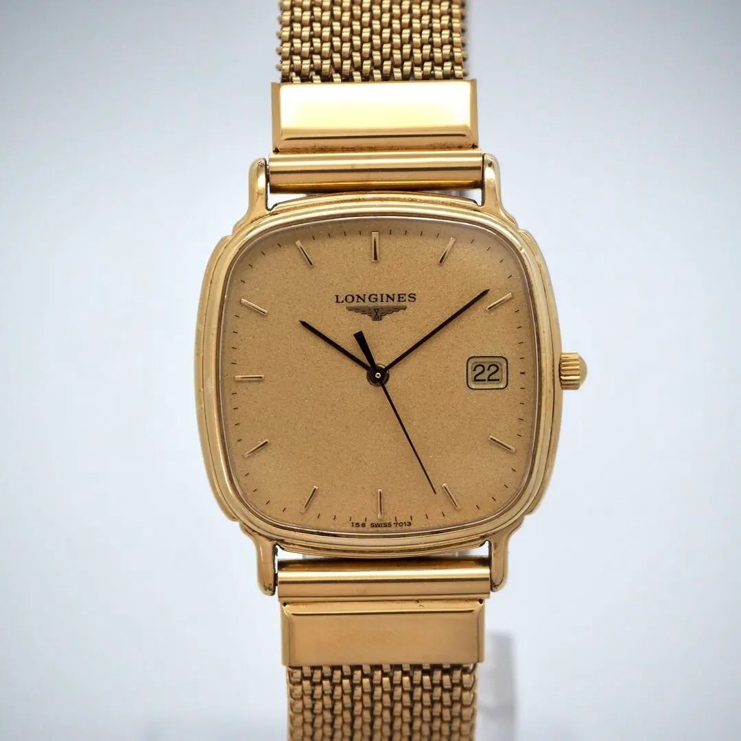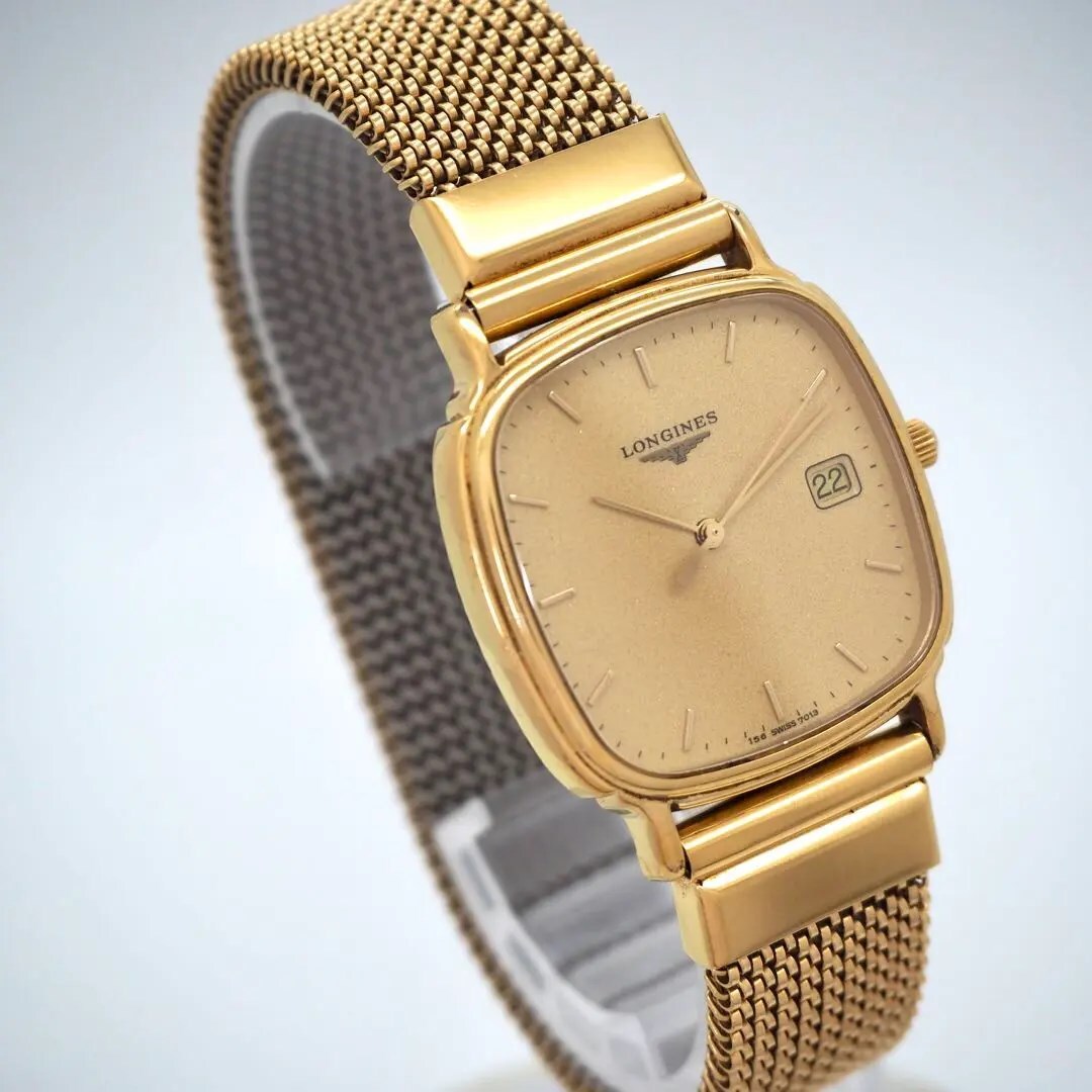 725 LONGINES 時計 メンズ スクエア ゴールド デイト ヴィンテージ