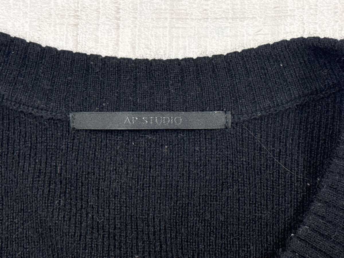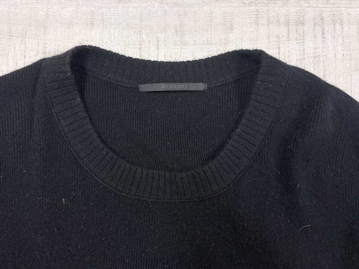 AP STUDIO エーピー ストゥディオ L'Appartement アパルトモン Uネック ニット セーター レディース リブ切替 ウール・カシミヤ混合 黒 です。